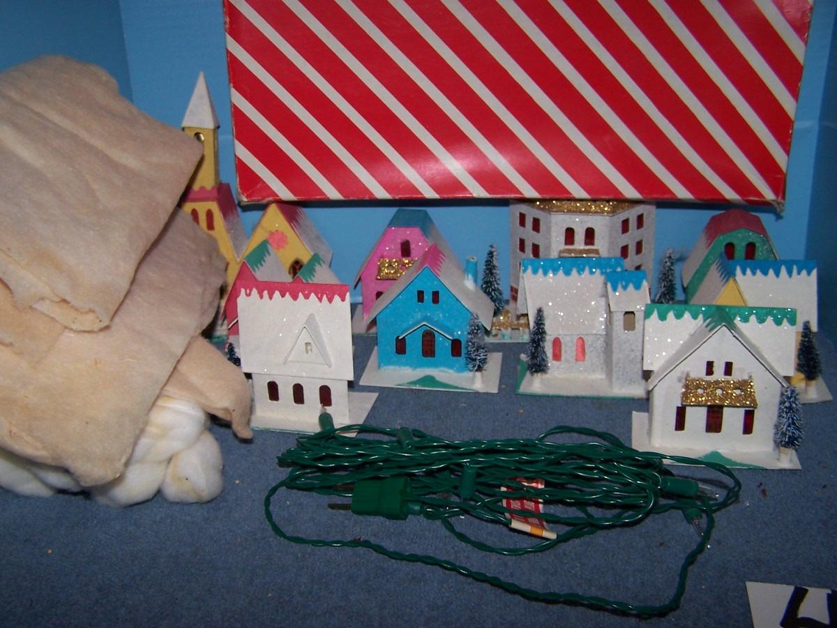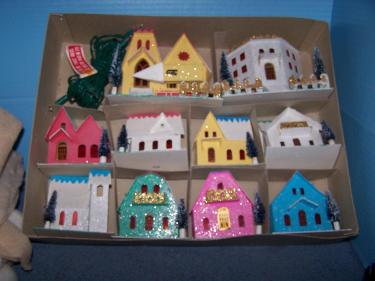 LOT 41 SPECTACULAR VINTAGE CHRISTMAS PUTZ LIGHTED VILLAGE BOX SET