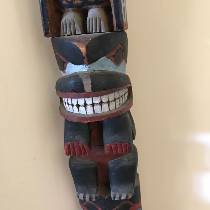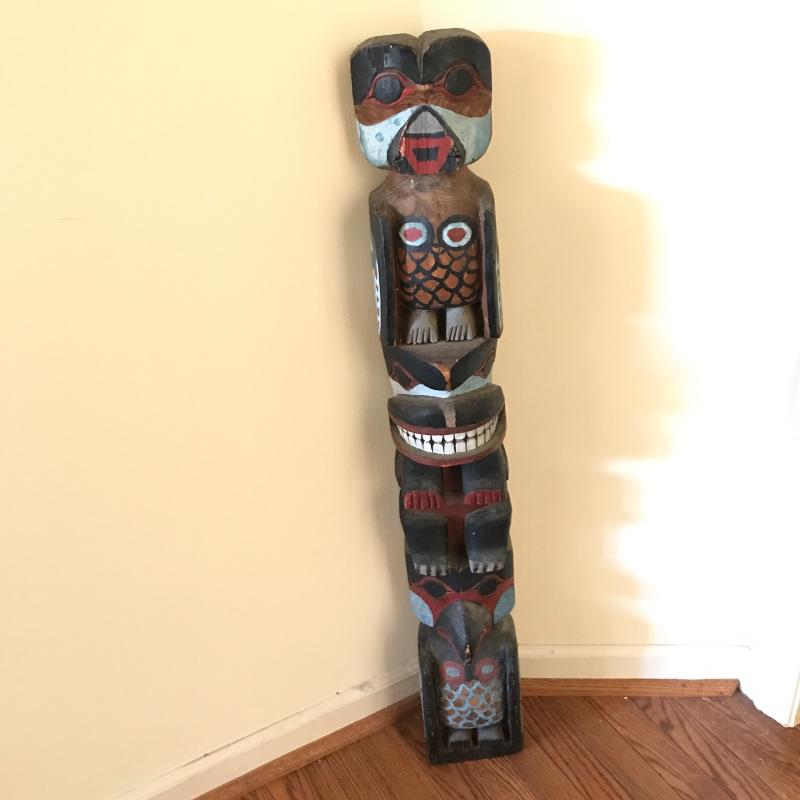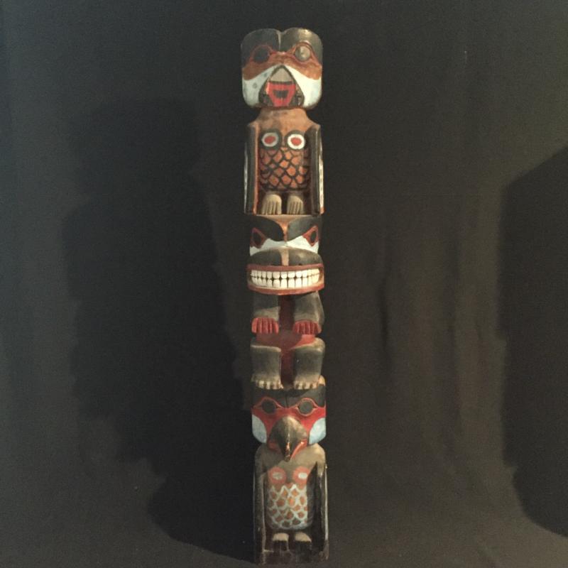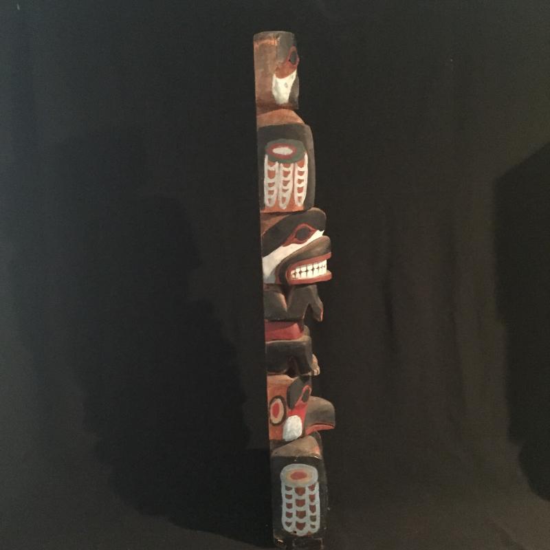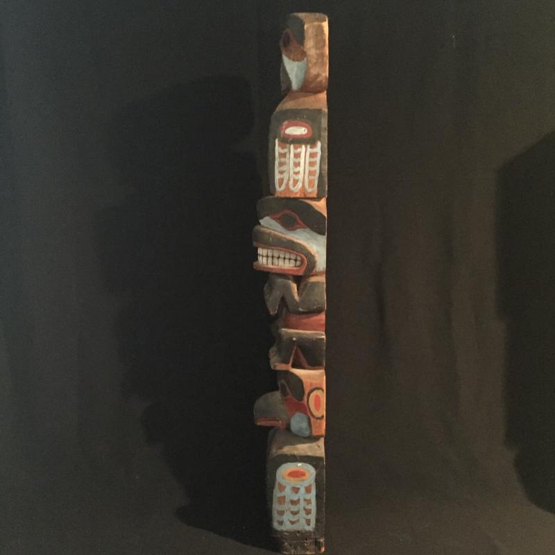 Captivating Totem made by James Rudolph of Juneau Alaska. At over 3ft tall it is a very striking piece. Includes several books about totem art. Measures 40” Tall. Shipping available