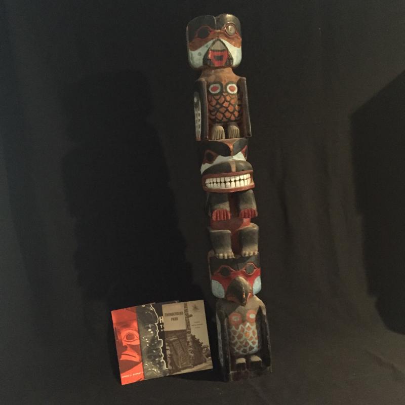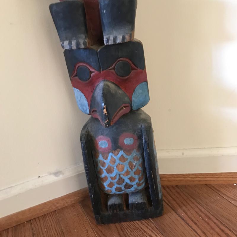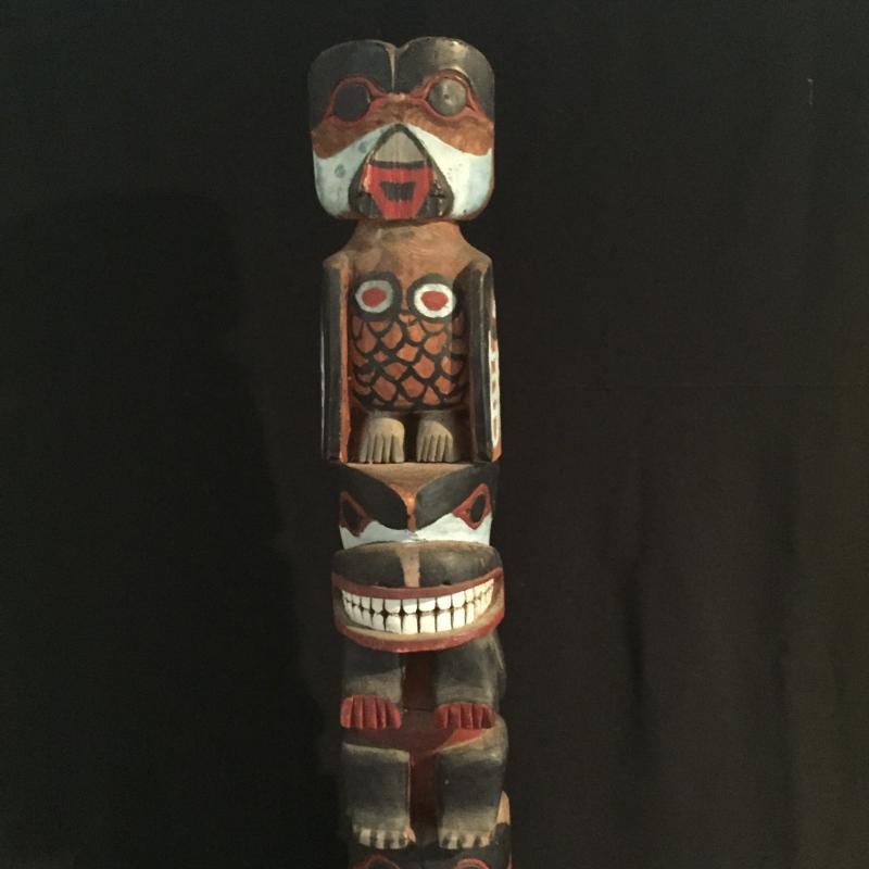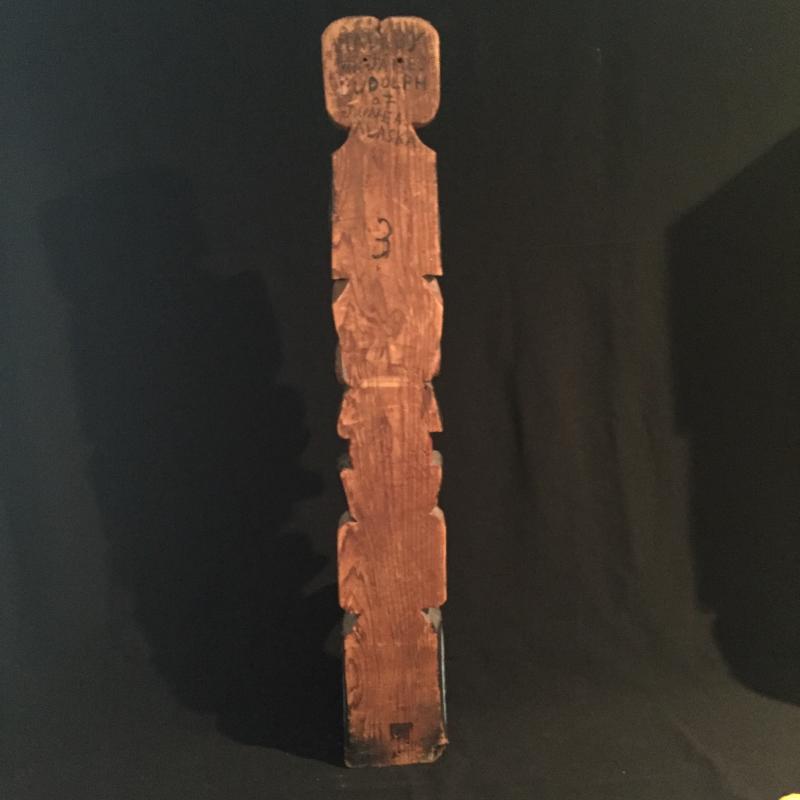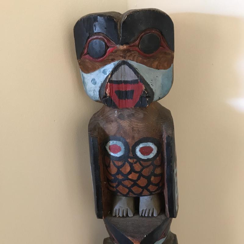 Captivating Totem made by James Rudolph of Juneau Alaska. At over 3ft tall it is a very striking piece. Includes several books about totem art. Measures 40” Tall. Shipping available