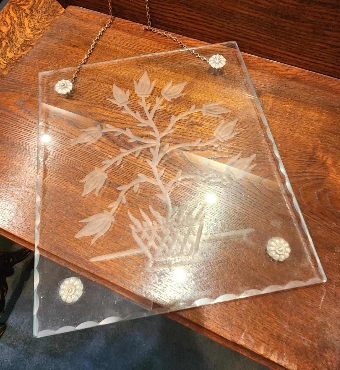 Lot #41 Vintage Etched Glass Sun Catcher - beveled edge