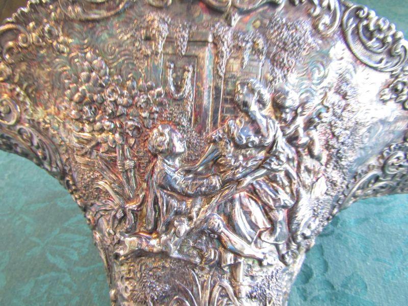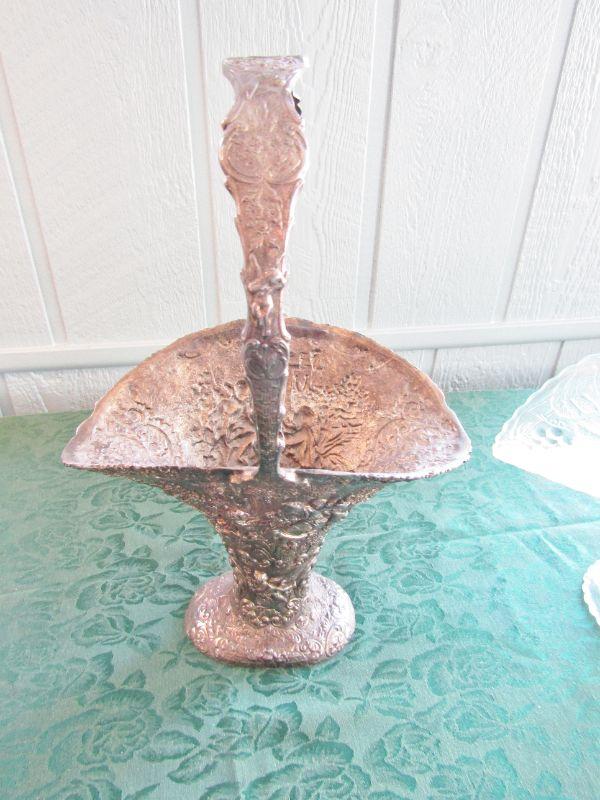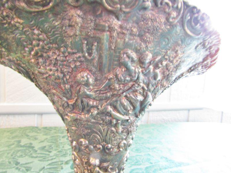 TALL METAL BASKET WITH EMBOSSED CHERUBS AND MORE