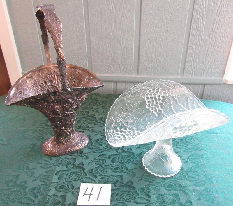 LOT 41  VINTAGE GLASS & METAL BASKETS