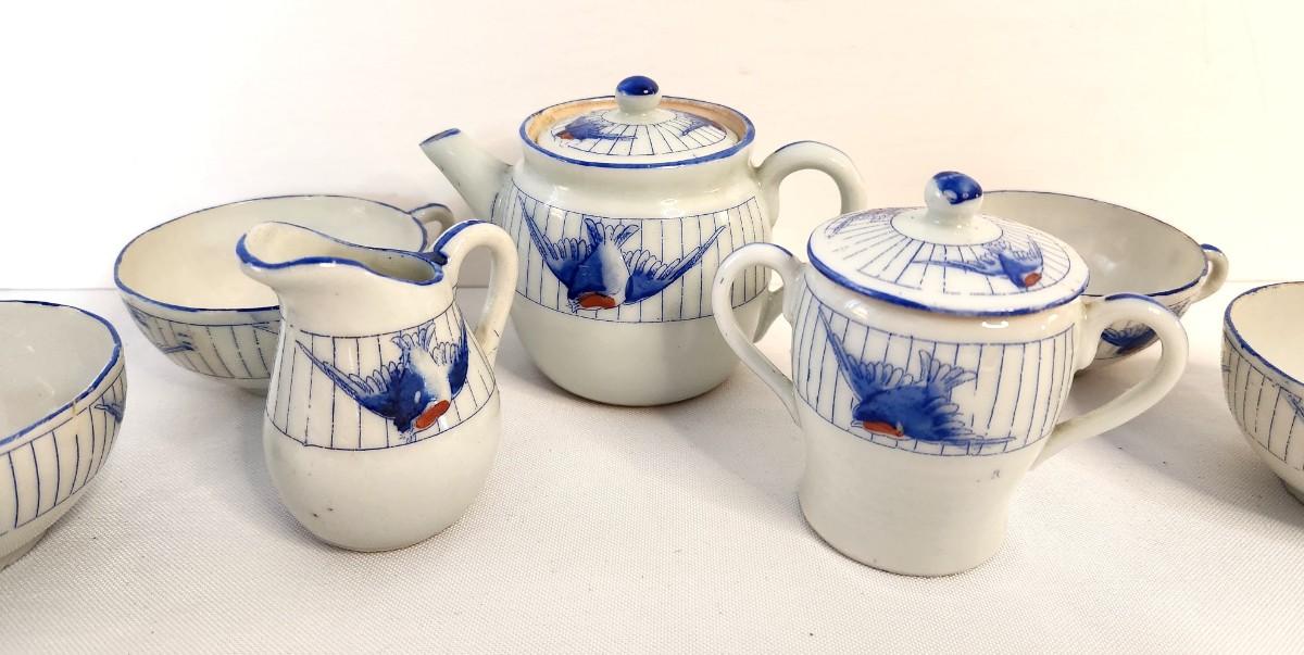 Lot #41 Vintage Miniature Tea Set - Blue/White - Blue Bird of Happiness