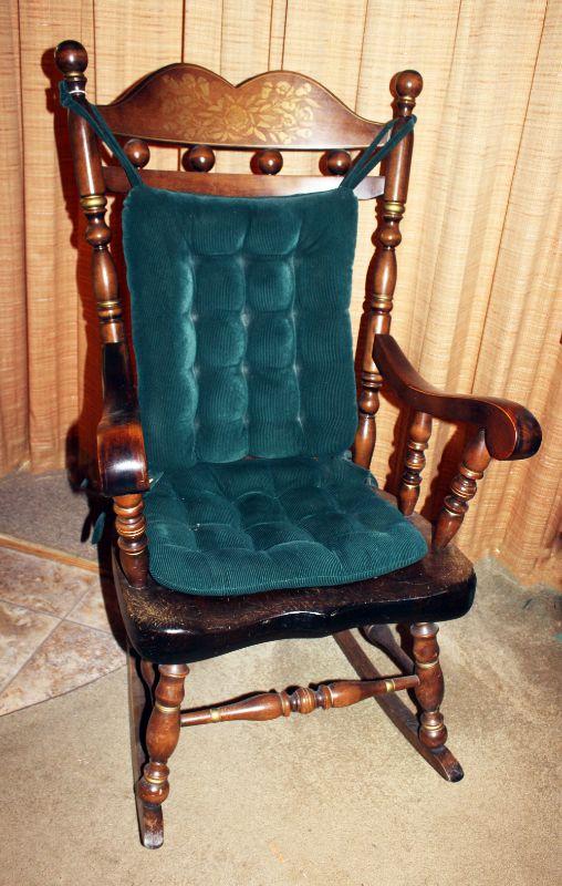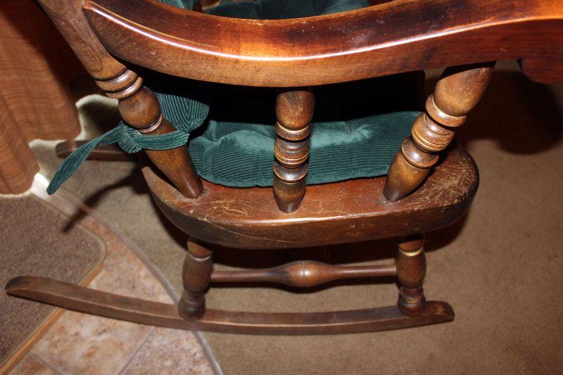 Chair is solid and in good overall condition. There are some scratches on the side (see Photo) Great for a new mother!