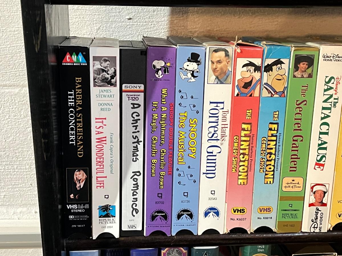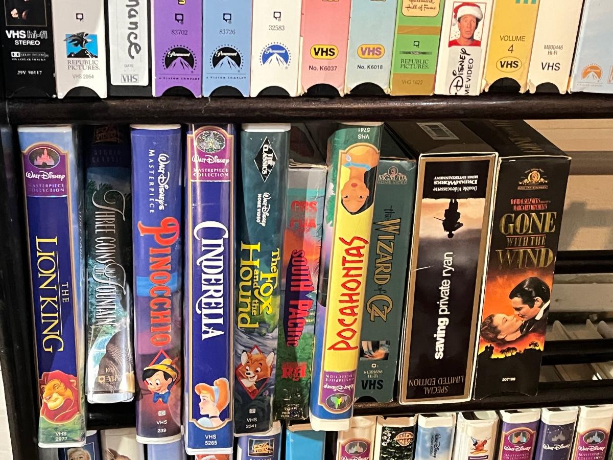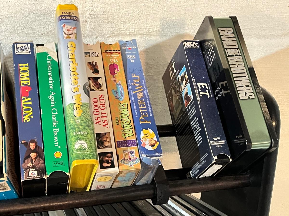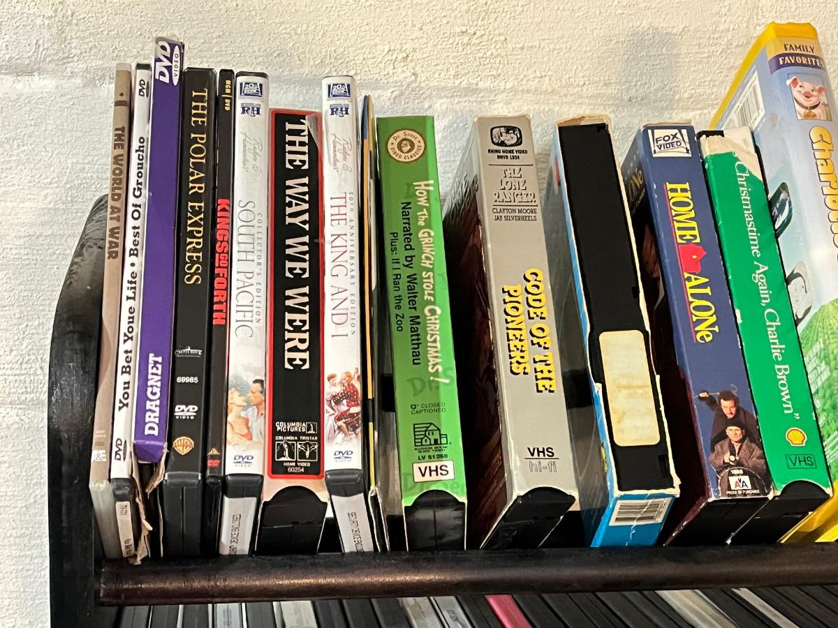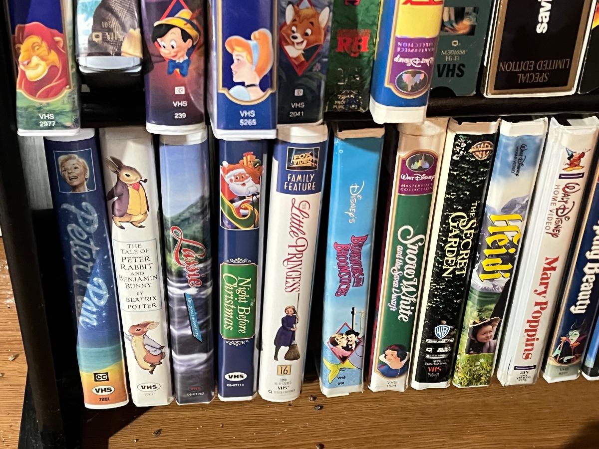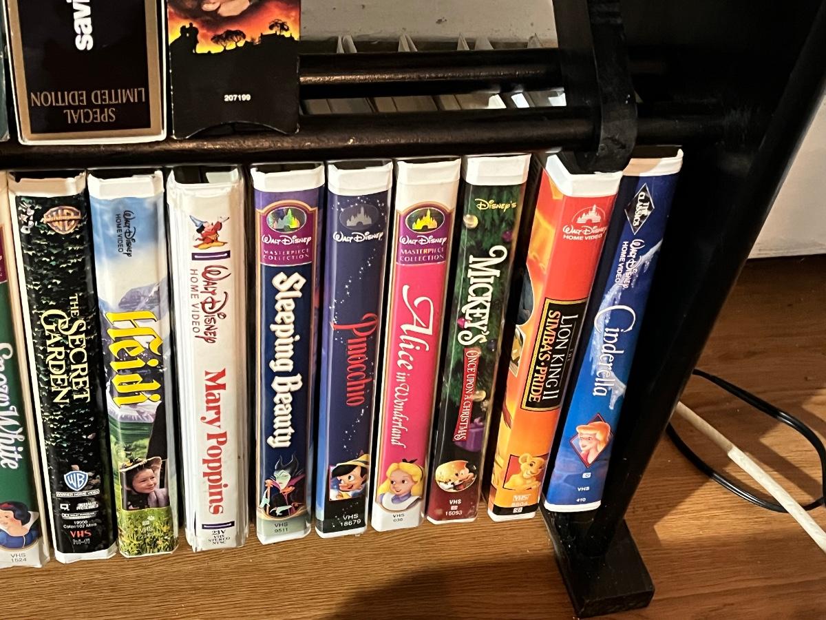 LOT 410B: DVDs and VHS Tapes - Many Still Sealed - and Media Shelf