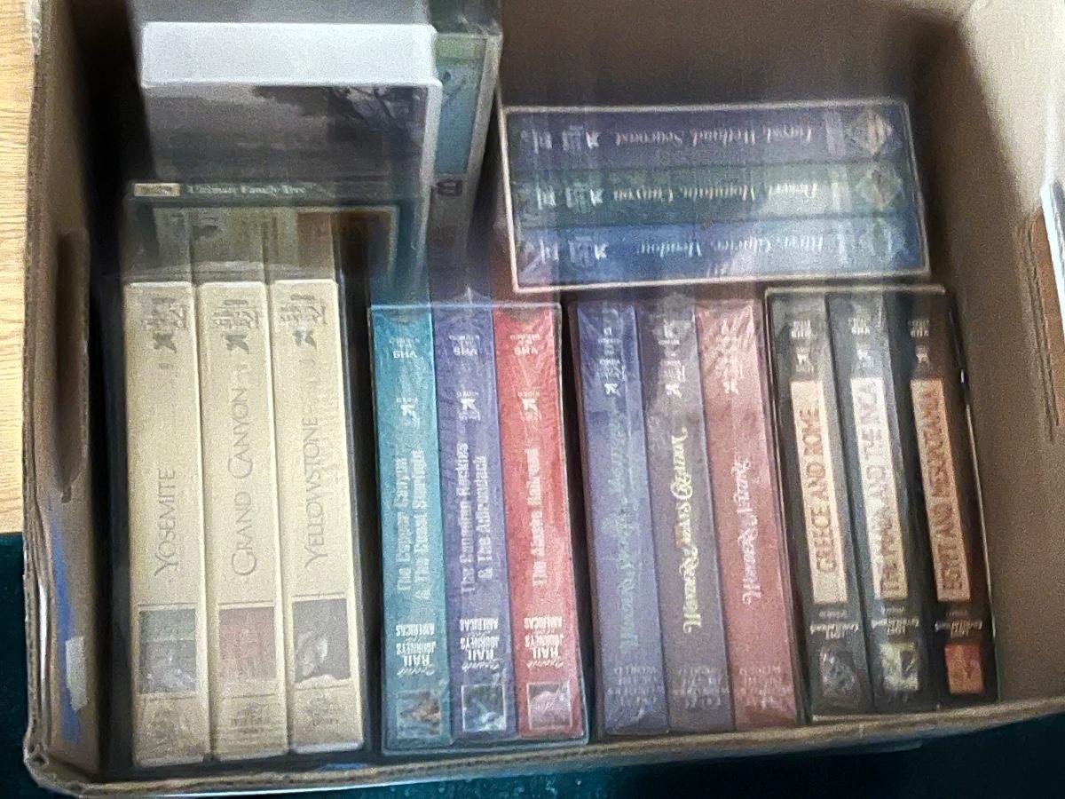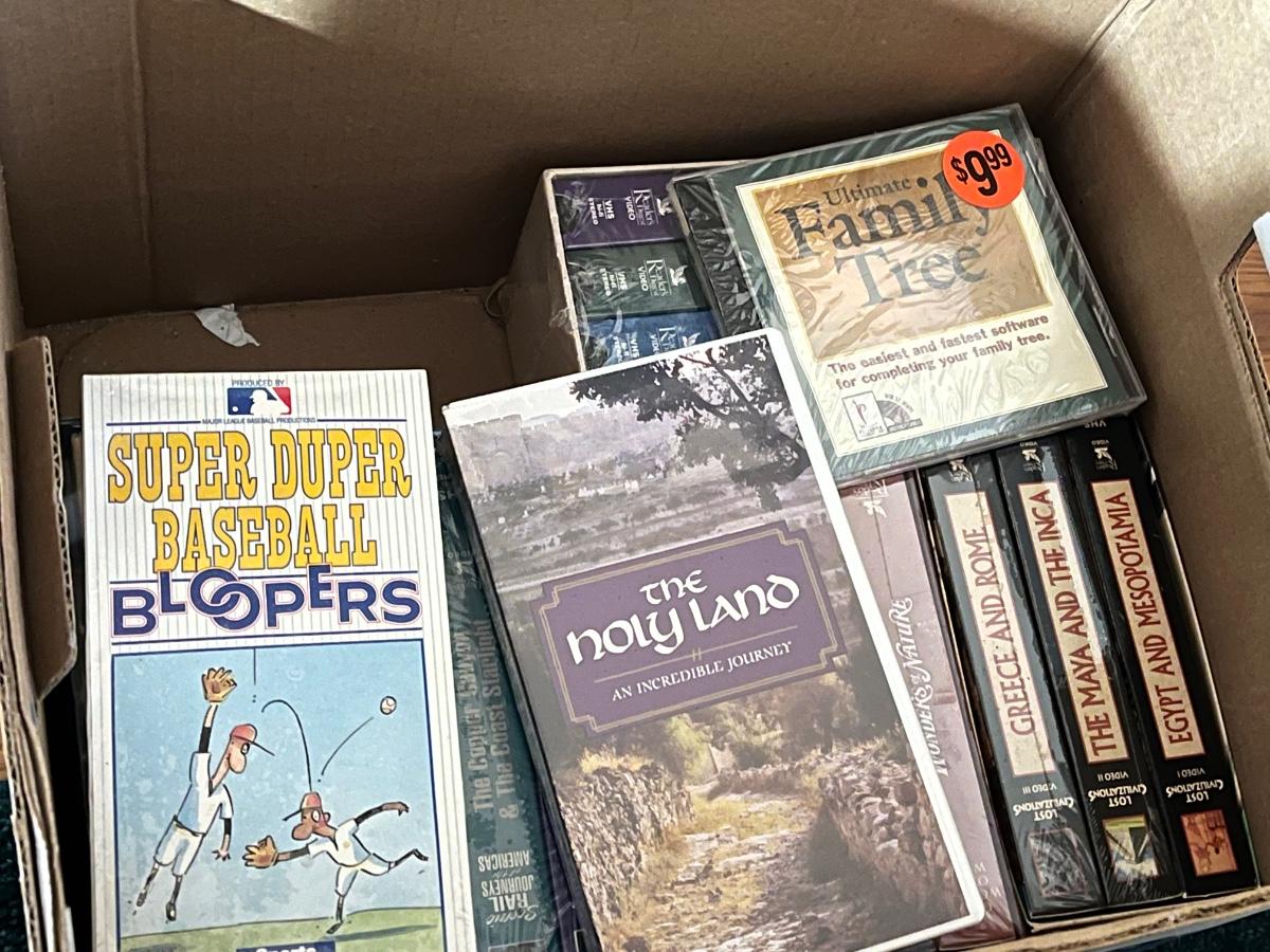 LOT 410B: DVDs and VHS Tapes - Many Still Sealed -  and Media Shelf