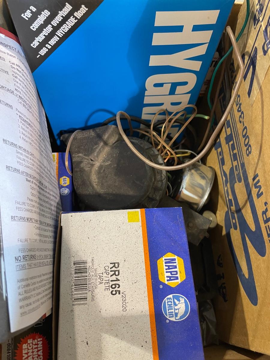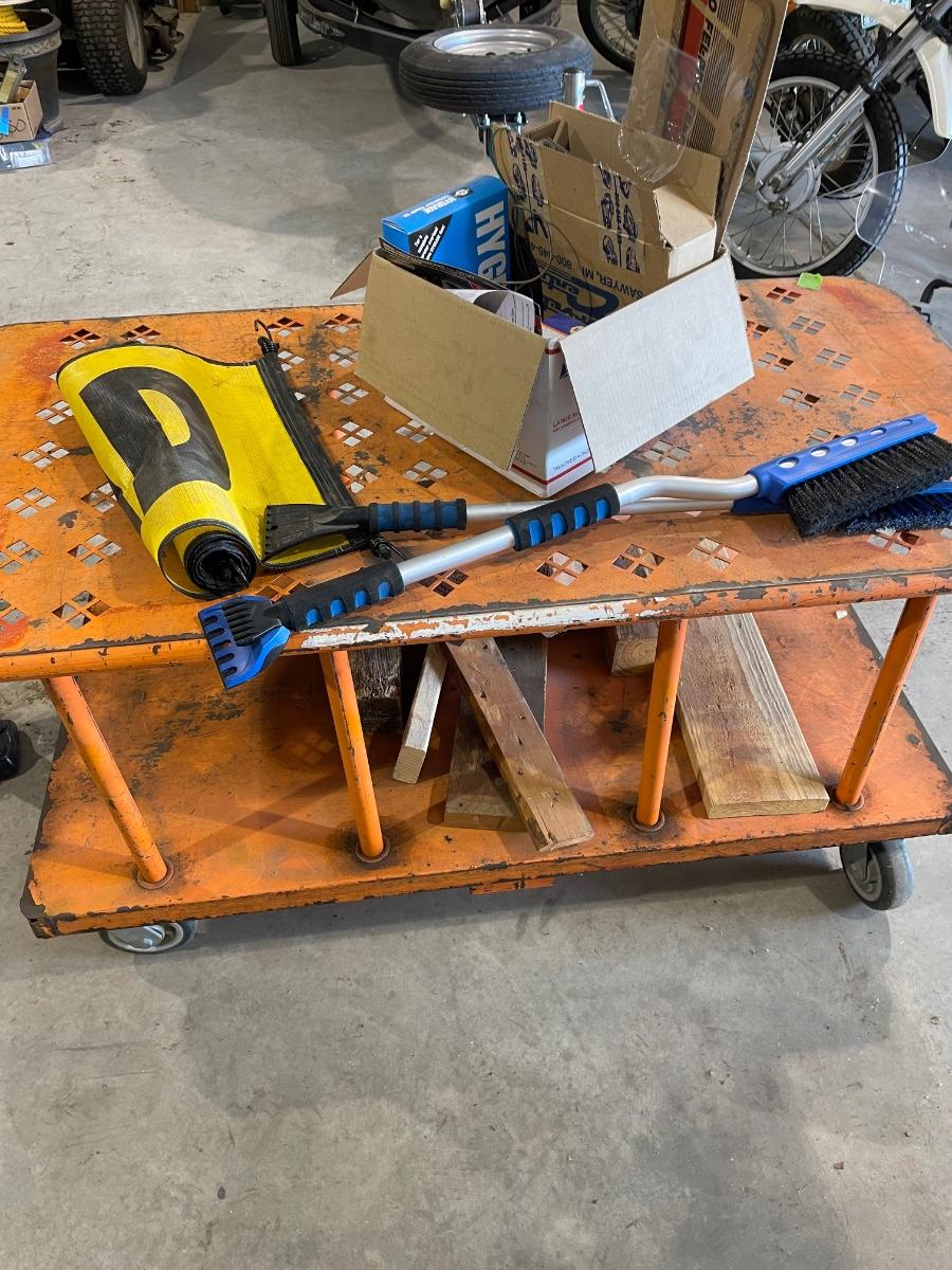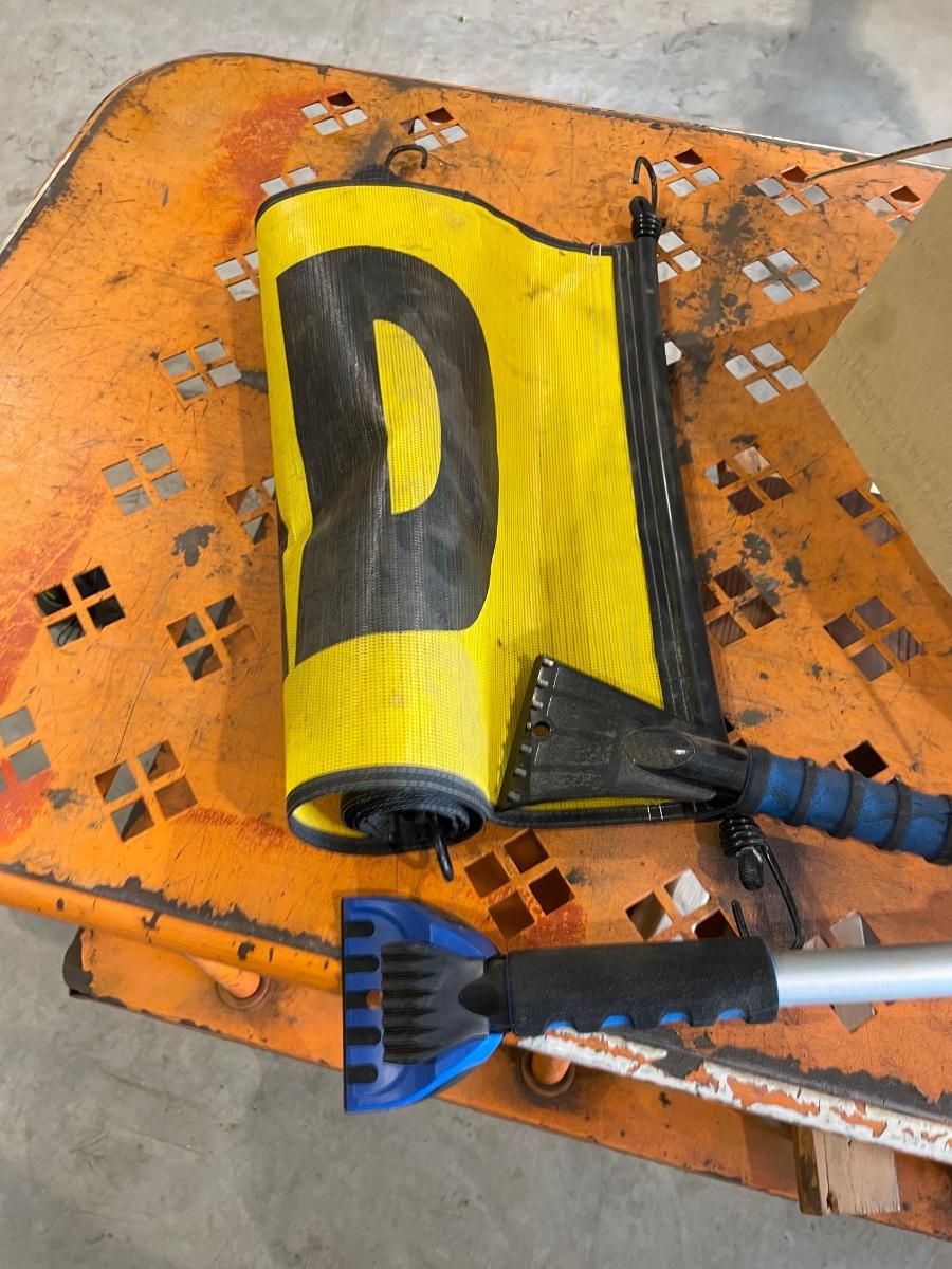 windshield scrapers, oil filters, carburtator repair kit,oversized load sign
