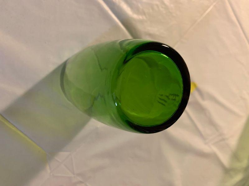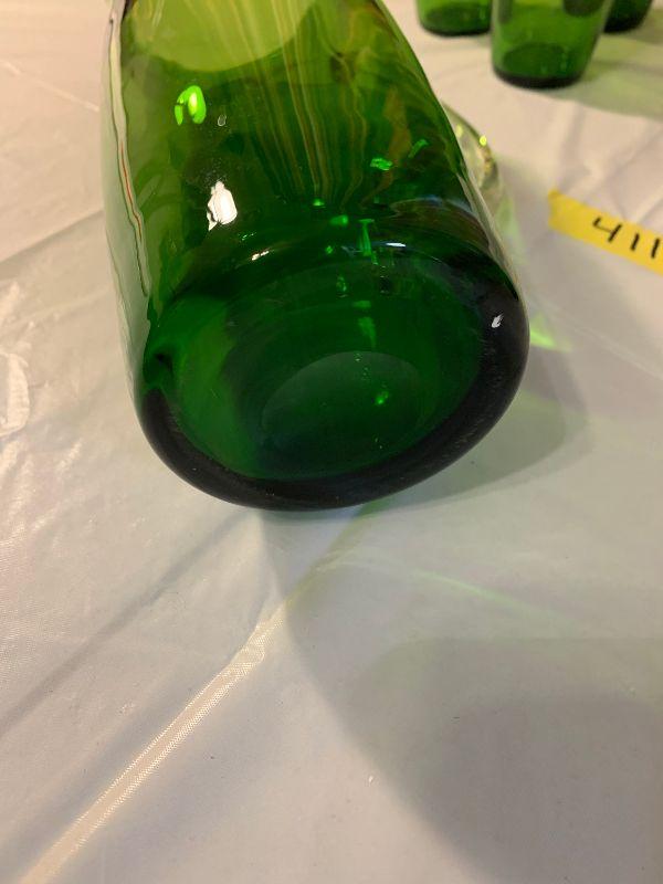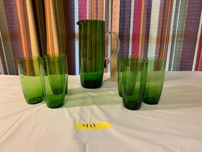 Green Ice Tea Pitcher with clear handle and 6 glasses very nice