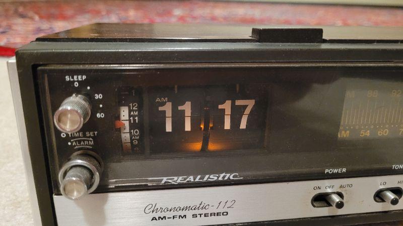 Lot 411: Vintage REALISTIC Chronomatic 112 AM FM Alarm Flip Clock Stereo TESTED A+