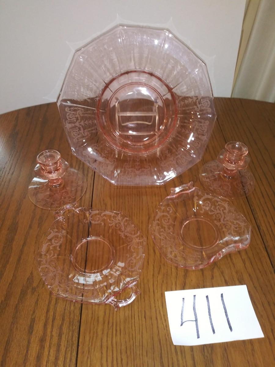 LOT 411 PINK DEPRESSION GLASS SERVEWARE