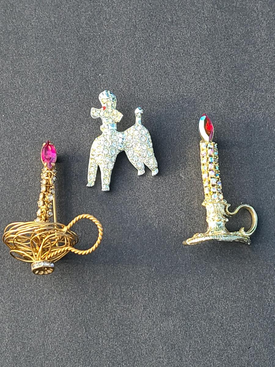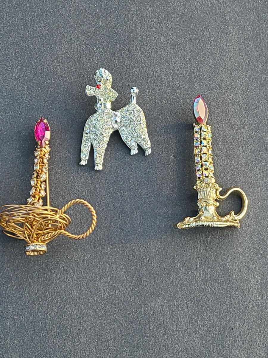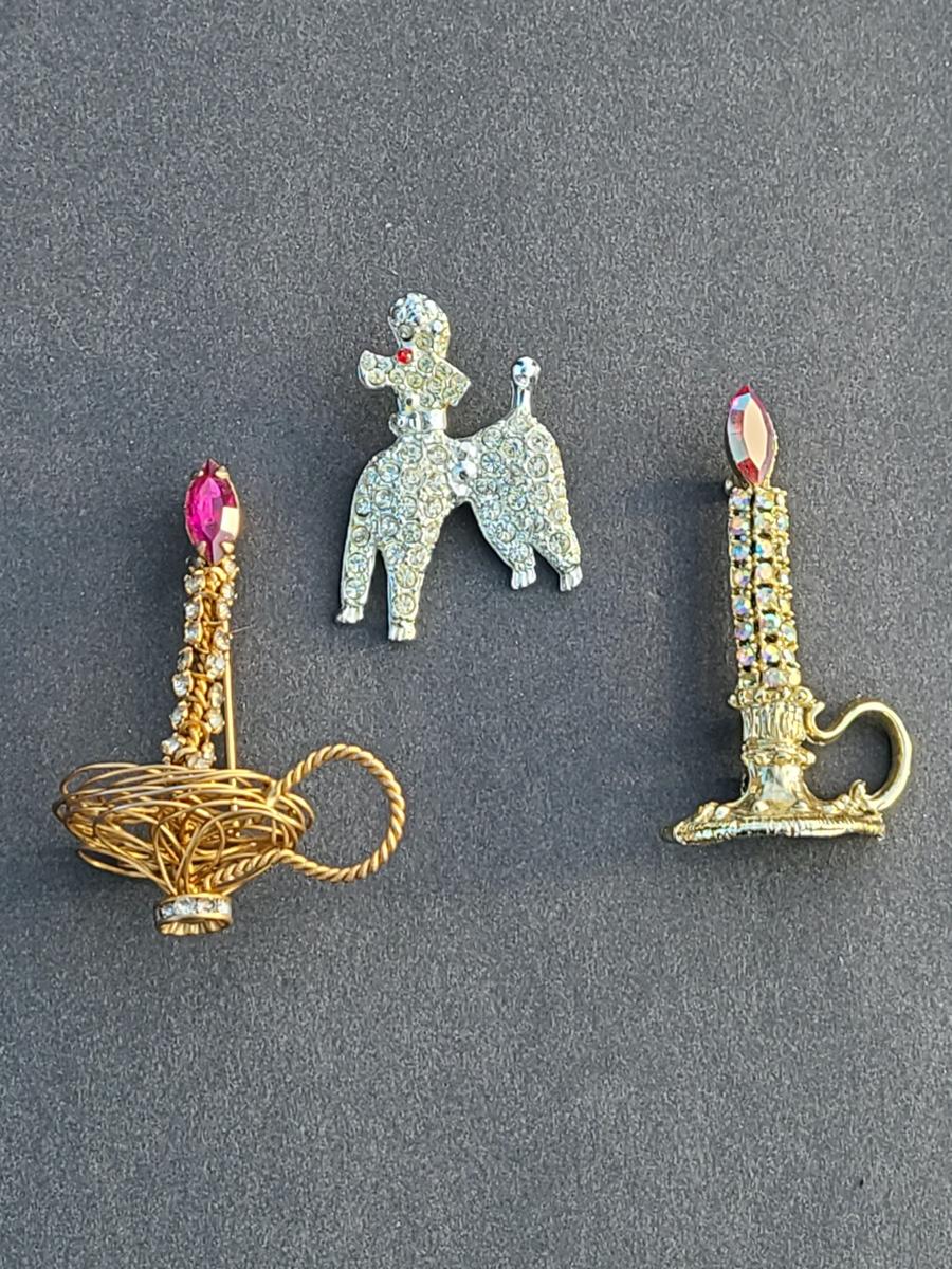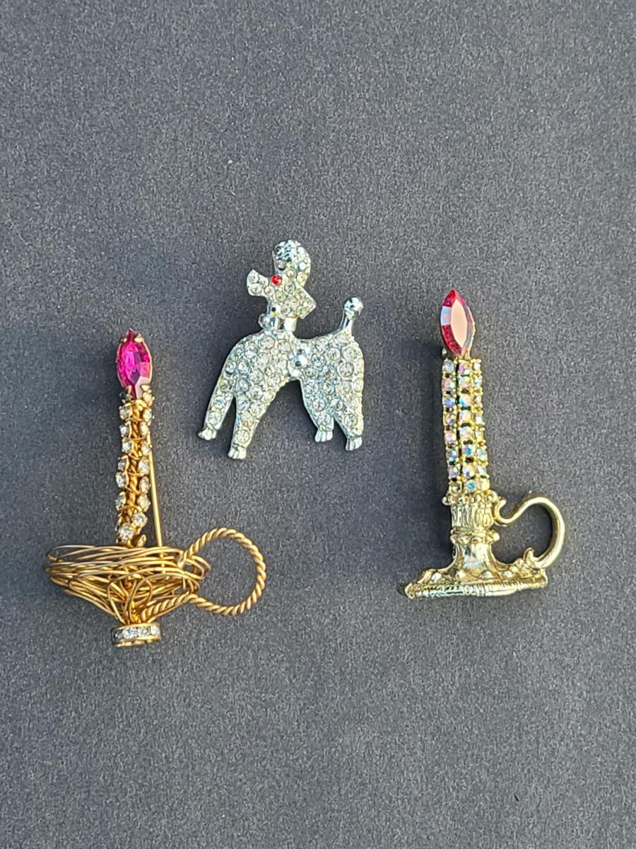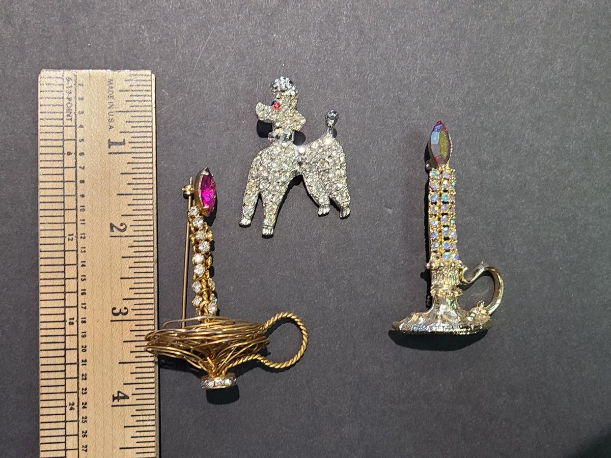 Lot 411: Vintage Rhinestone Poodle and Candlestick Brooches
