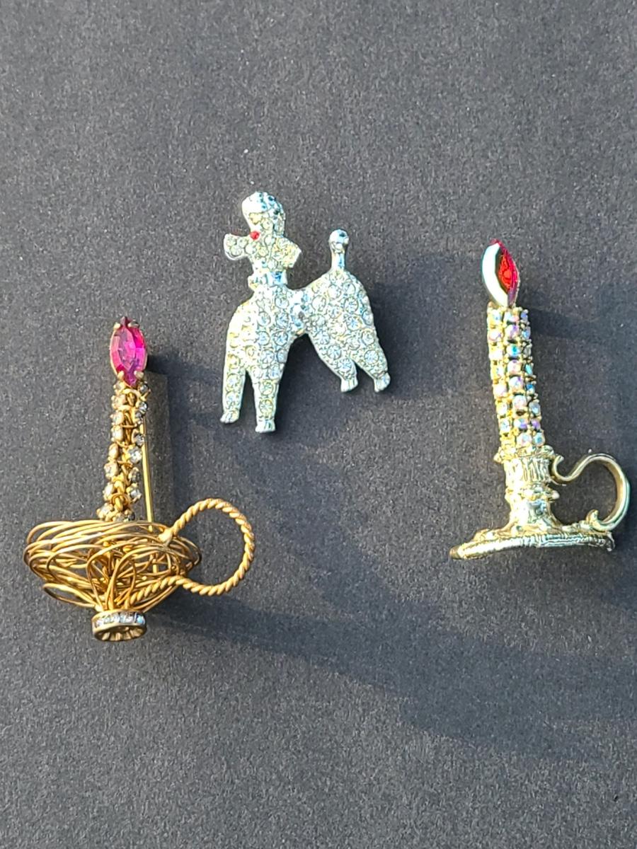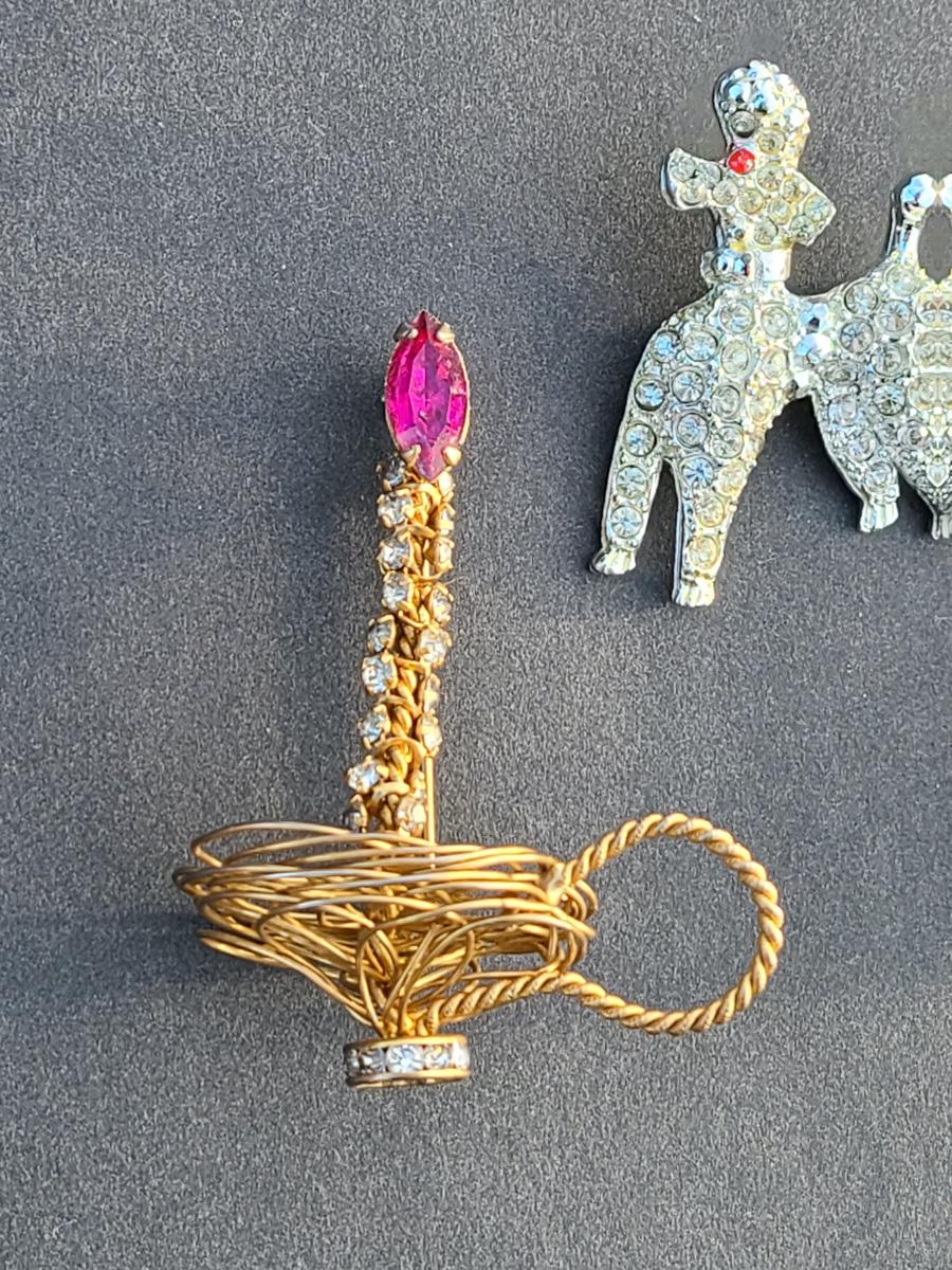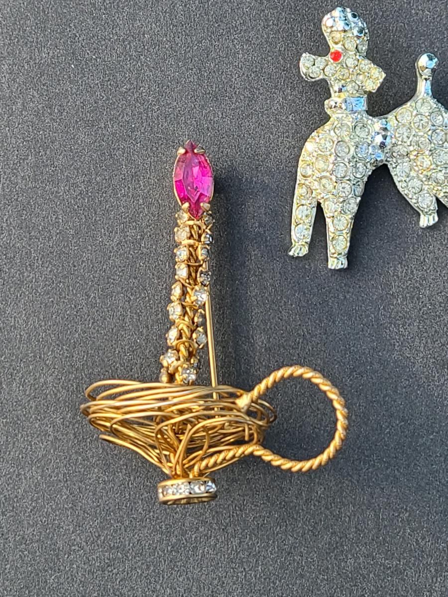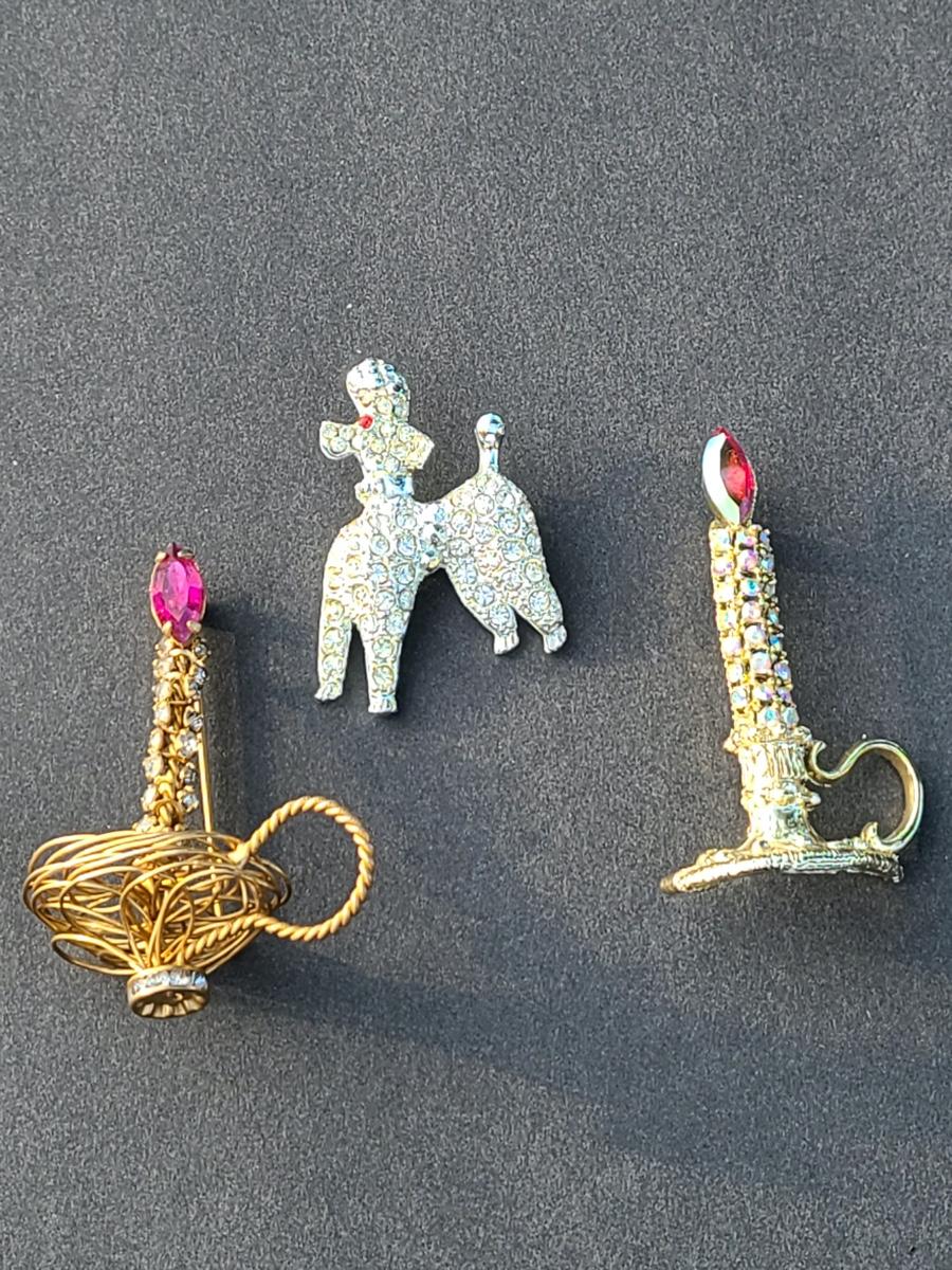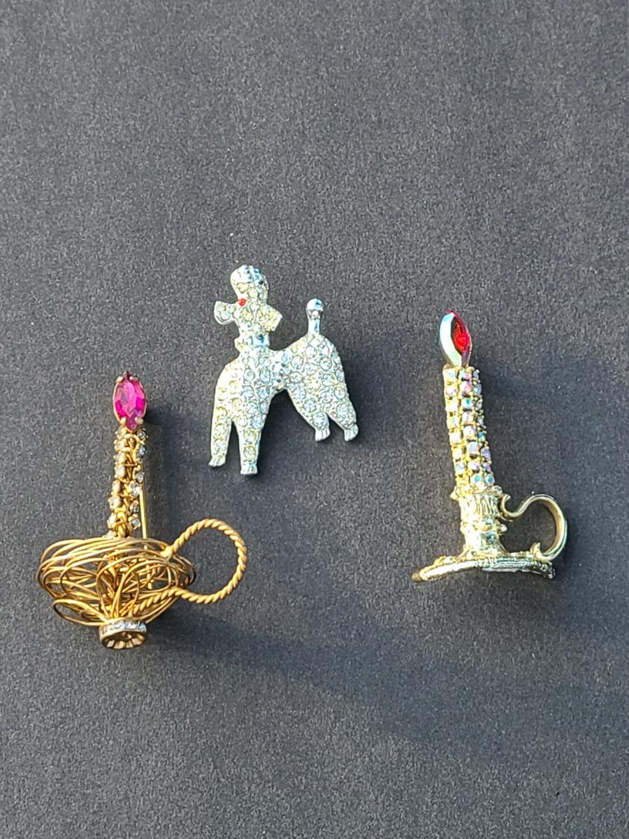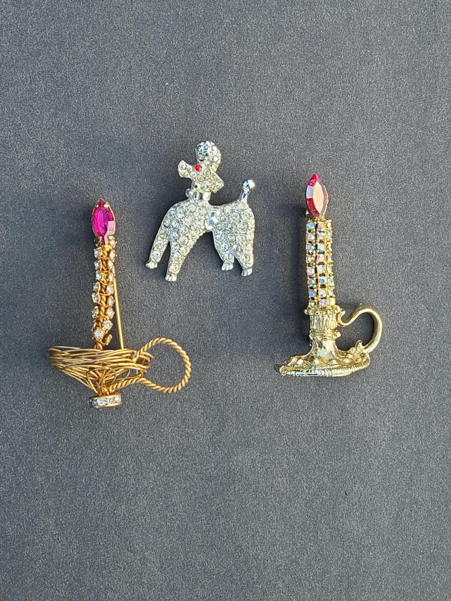 Lot 411: Vintage Rhinestone Poodle and Candlestick Brooches