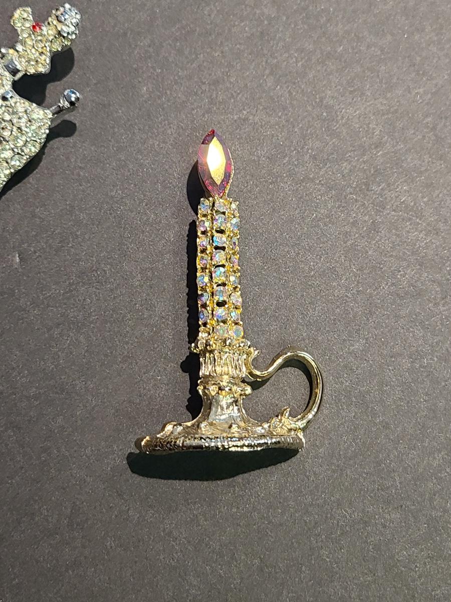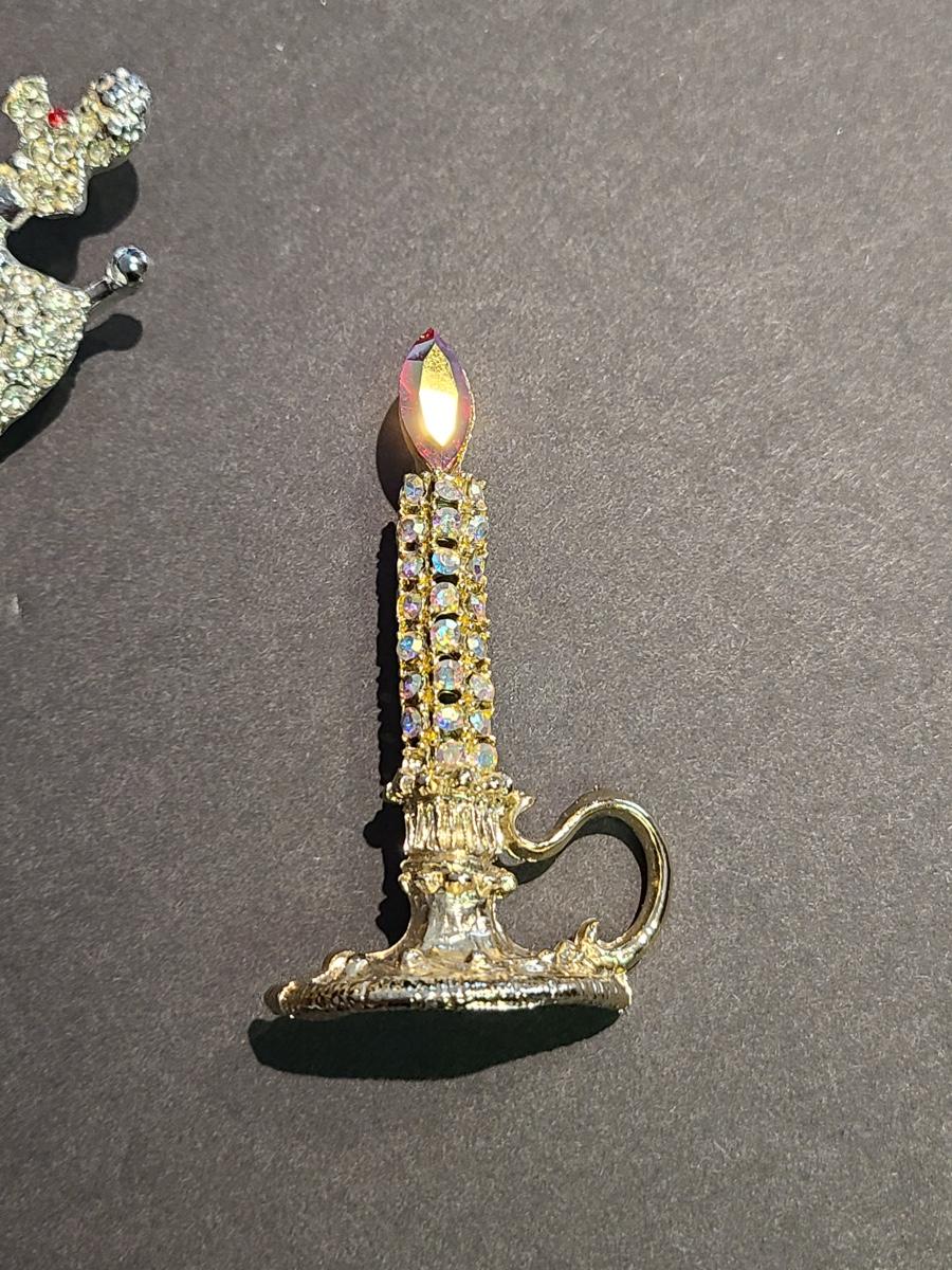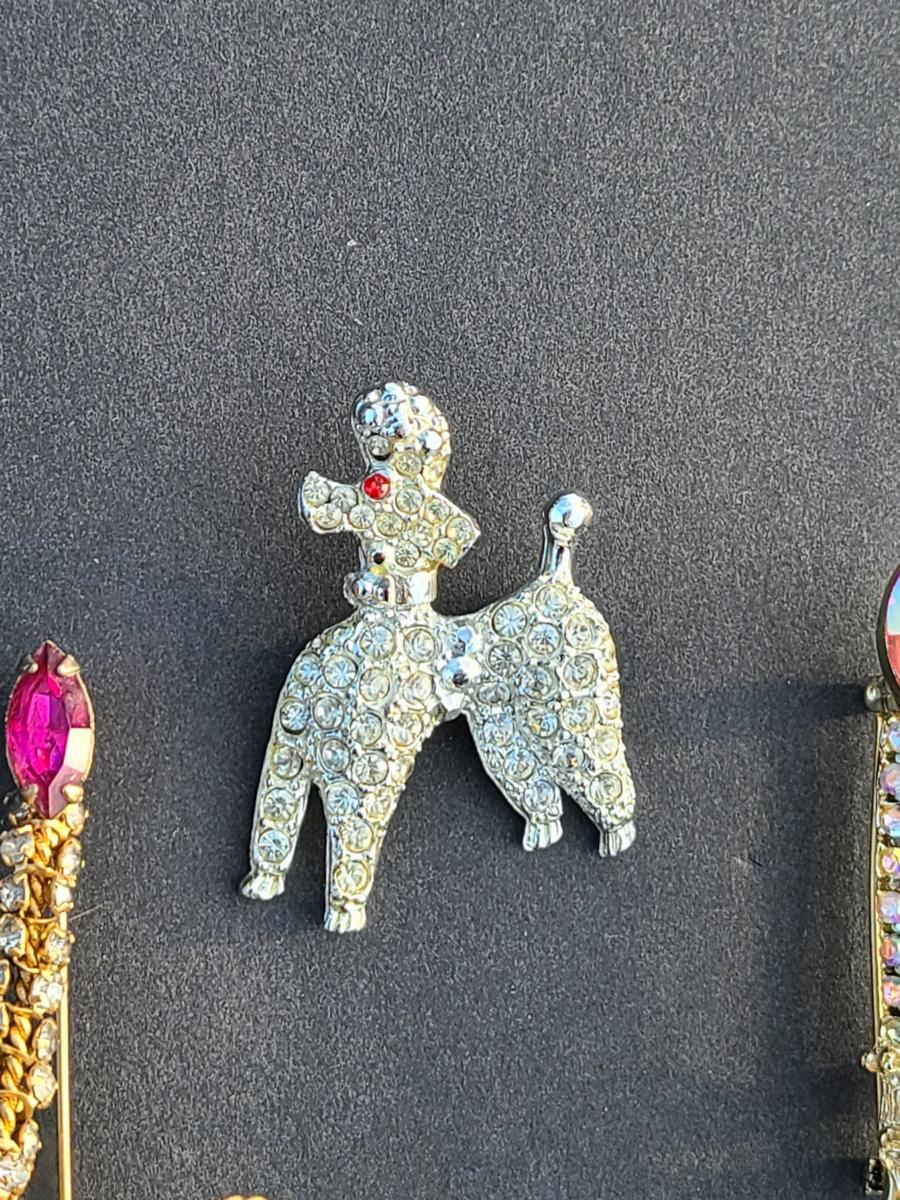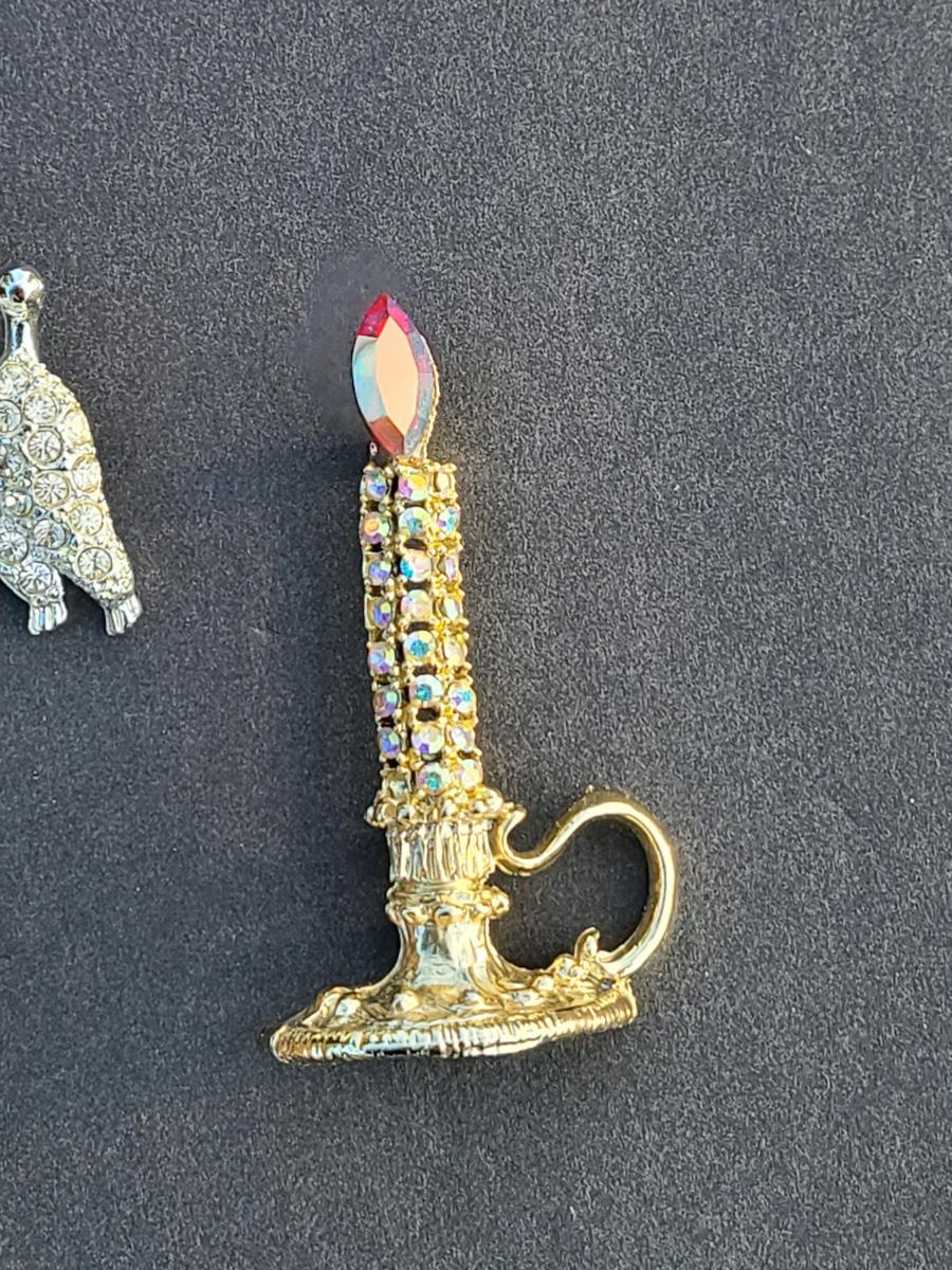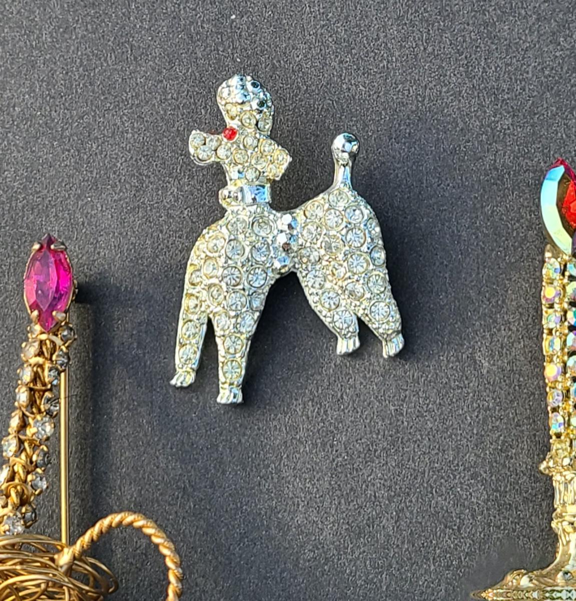 Lot 411: Vintage Rhinestone Poodle and Candlestick Brooches