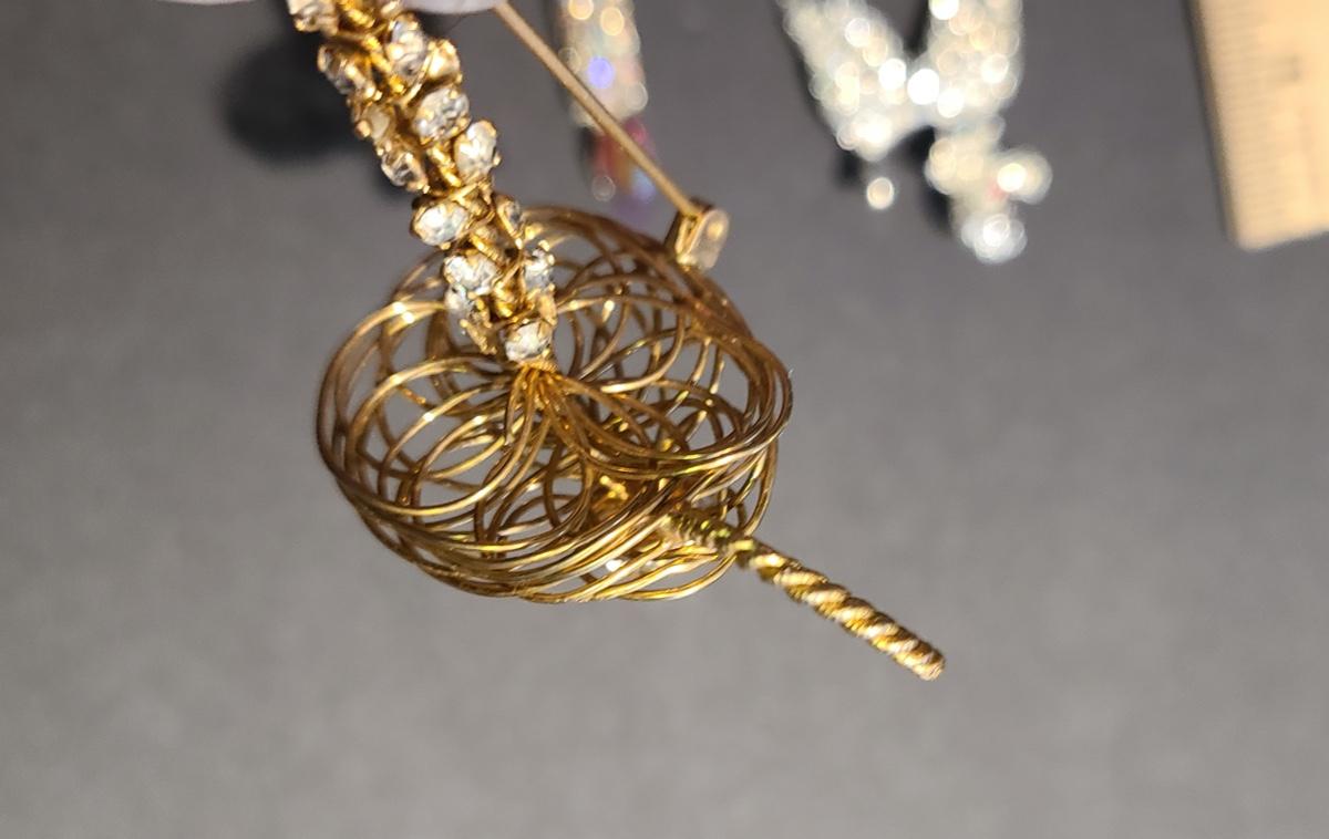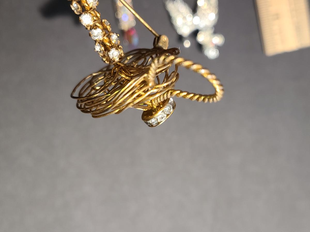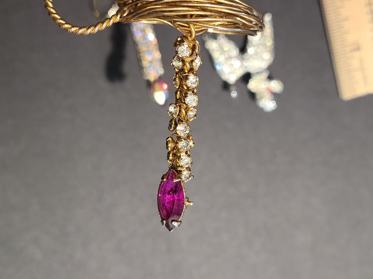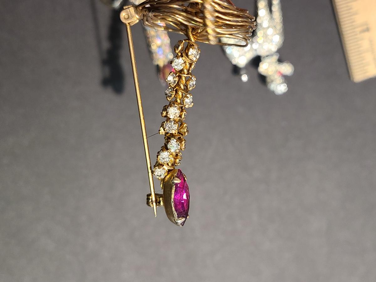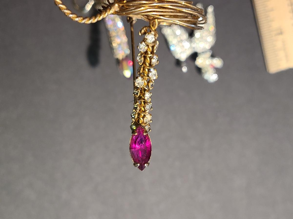 Three "blingy" brooches with rhinestones and colored stones. These are not signed. All are functional. Great collectors vintage jewelry pieces. Please see all pictures as they are the best representation of the items. The pictures show condition, measurements if taken, and what is included in the lot. Due to the large amount that we photograph and the time frame, we are not always able to take measurements. All items unless noted, are pre-owned and have been used. If you purchased furniture, you must bring help. We do not allow one person to carry large furniture out on their own. Bring help, tools and a truck for the safety of our client’s homes, and your personal safety. Company policy. Thank you.