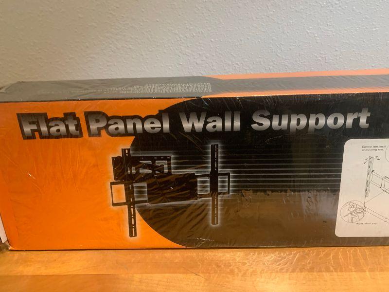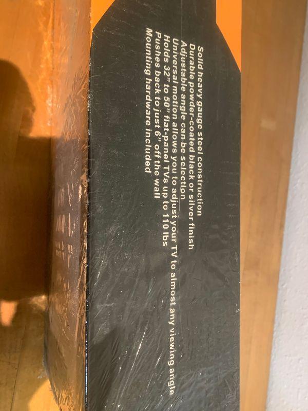 Flat panel wall support. Holds 110 lbs or less and holds 32" - 50" TV. New in box. Solid heavy gauge steel construction, durable powder coated black finish, universal motion allows you to adjust your TV to almost any viewing angle.