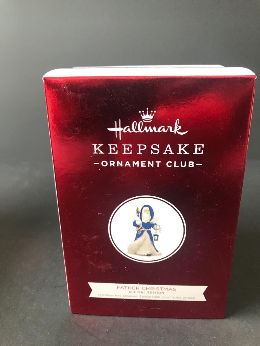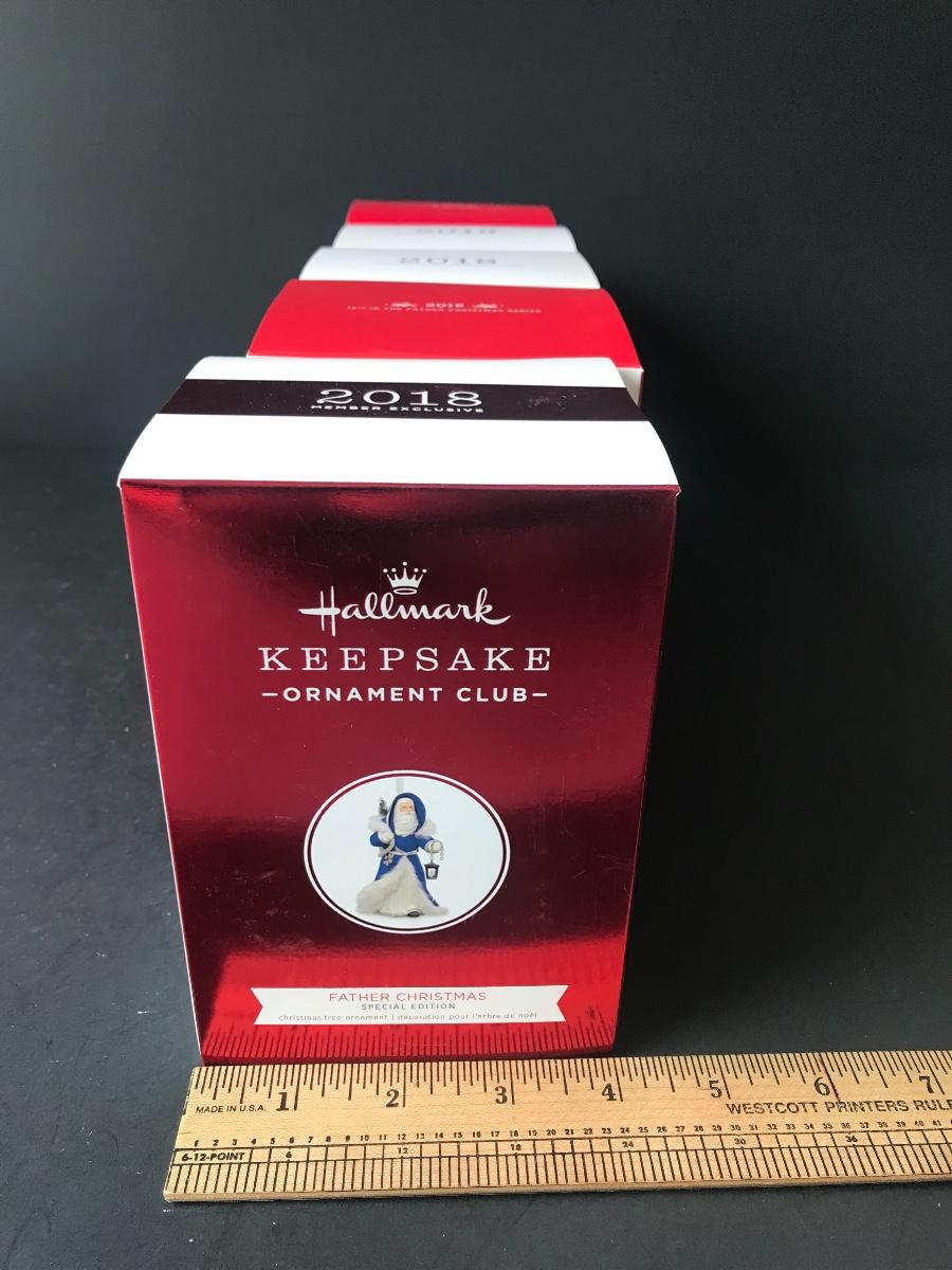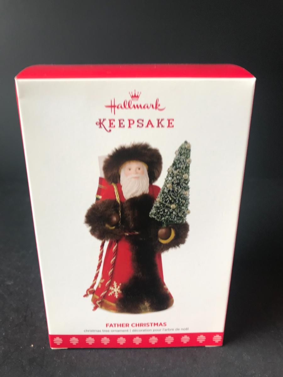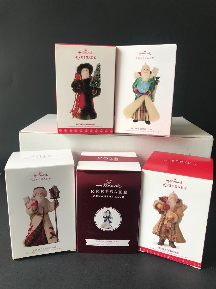 Father Christmas Hallmark Keepsake Ornaments. All Holiday items in this auction are as-seen. The client collected a lot of holiday pieces and some are new in box, some were displayed once and come with original box, and some have been displayed and come with no box. They are all pre-owned in some fashion and have been stored in an attic or on shelf in library. Please see all pictures. The pictures show condition, measurements if taken, and what is included in the lot. Due to the large amount that we photograph and the time frame, we are not always able to take measurements. All items unless noted, are pre-owned and have been used. Thank you