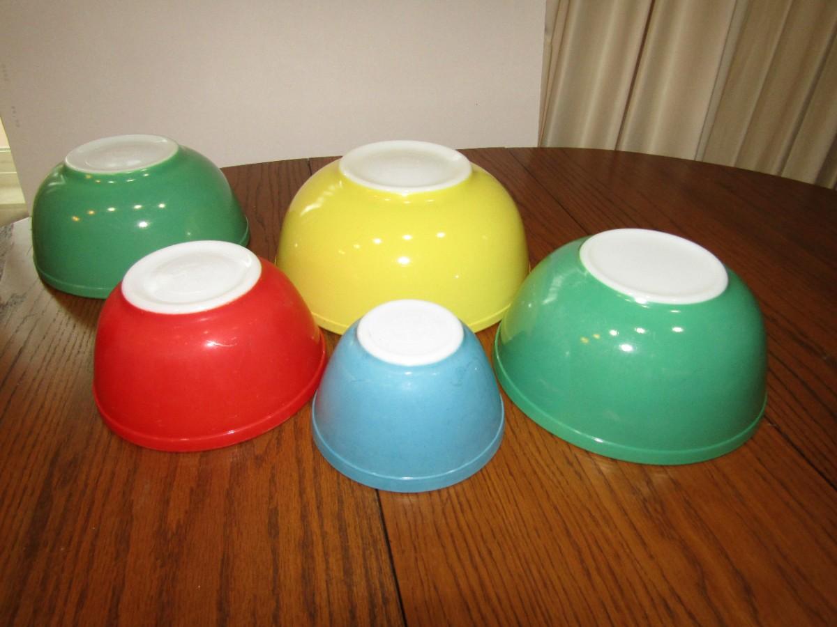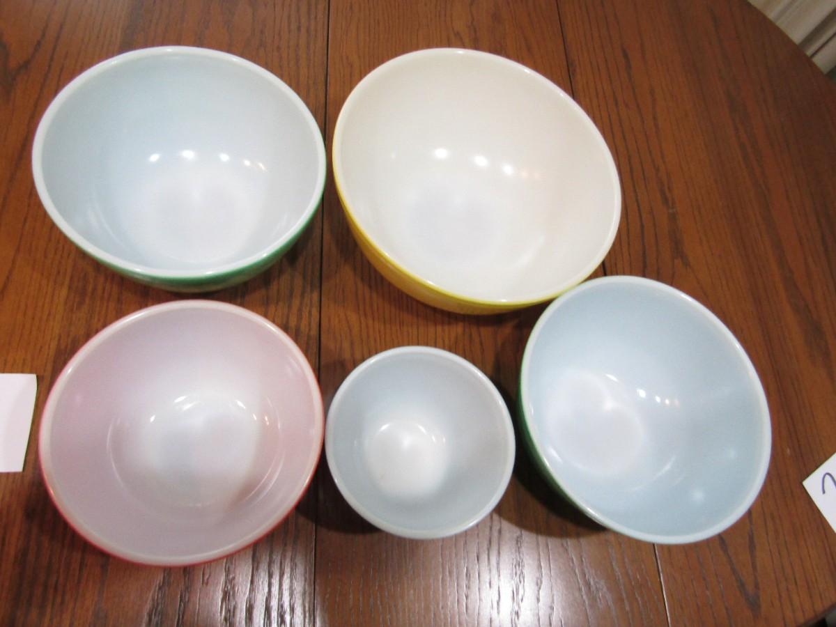 PYREX NESTING BOWLS PLUS 1 EXTRA. THEY ARE IN GREAT SHAPE