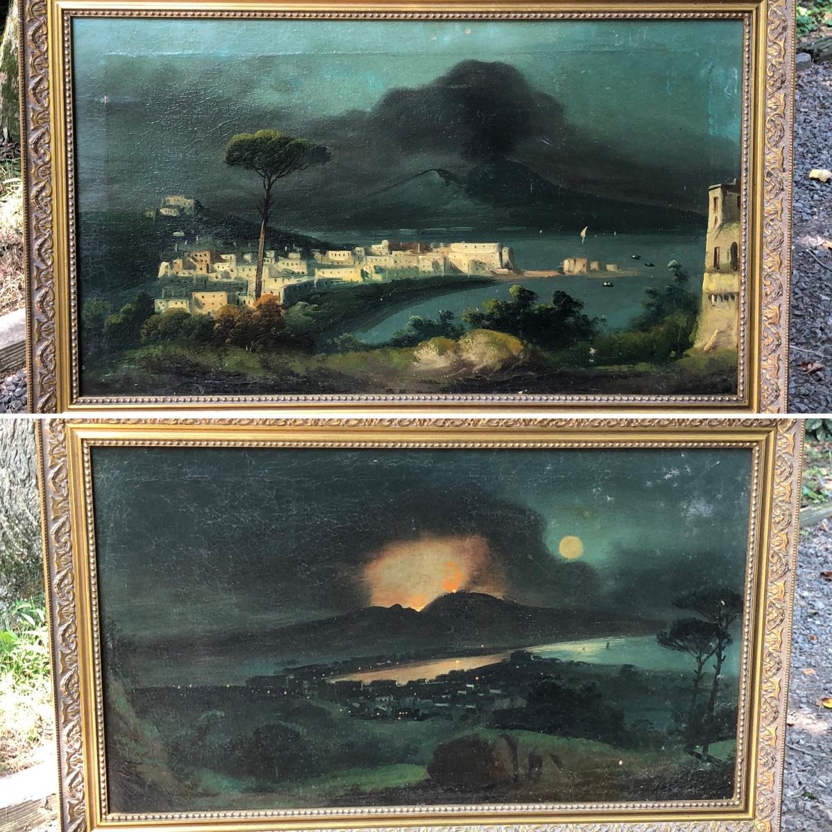 LOT 412: Two Paintings of Mount Vesuvius before and after 1872 Eruption by G. Gianni (Italian, 19th Century)