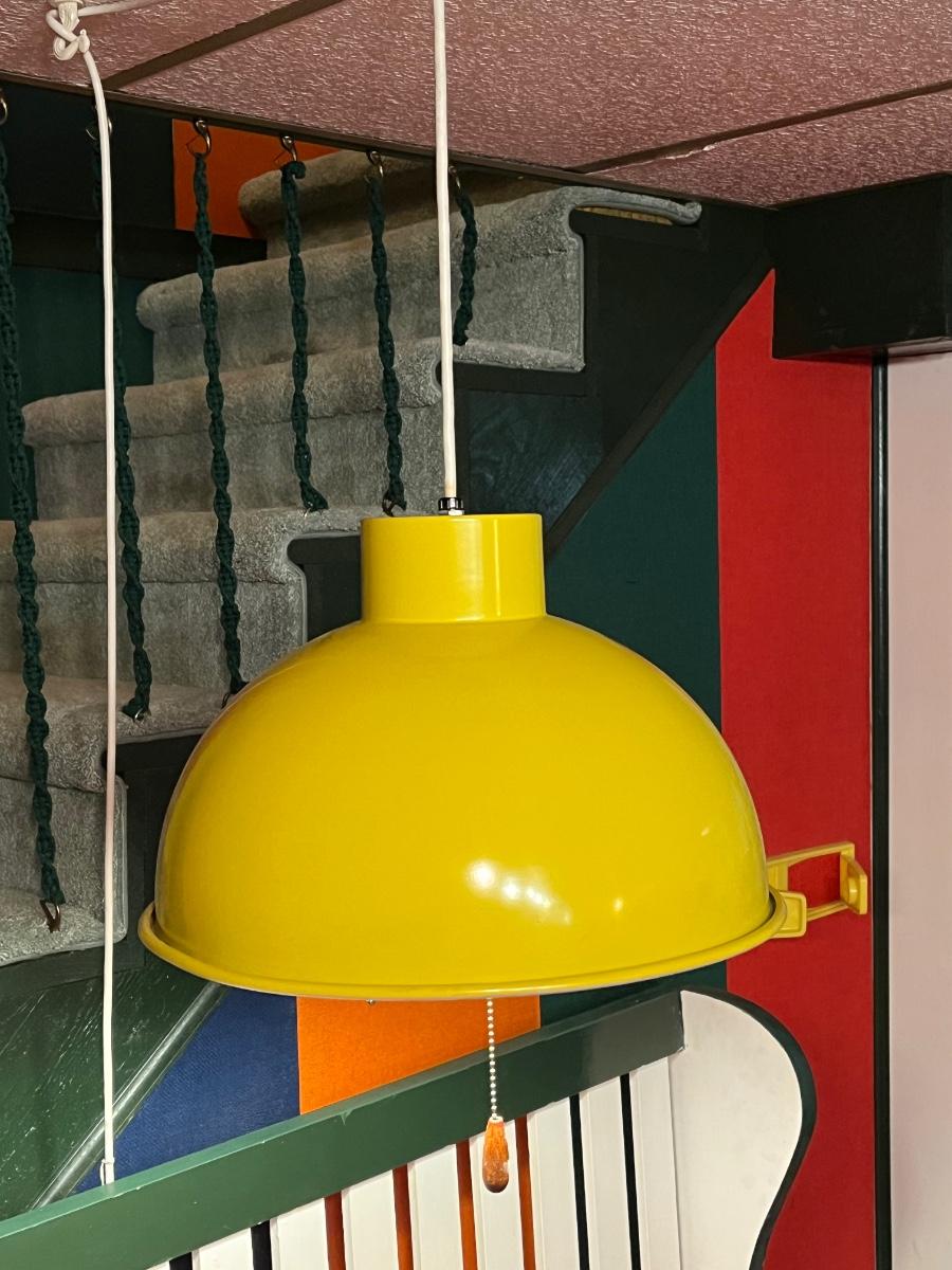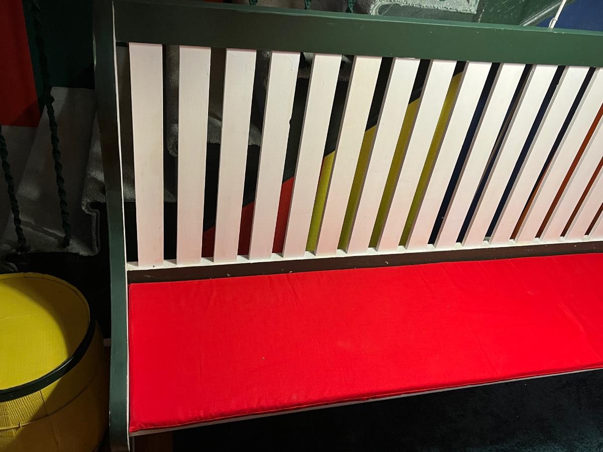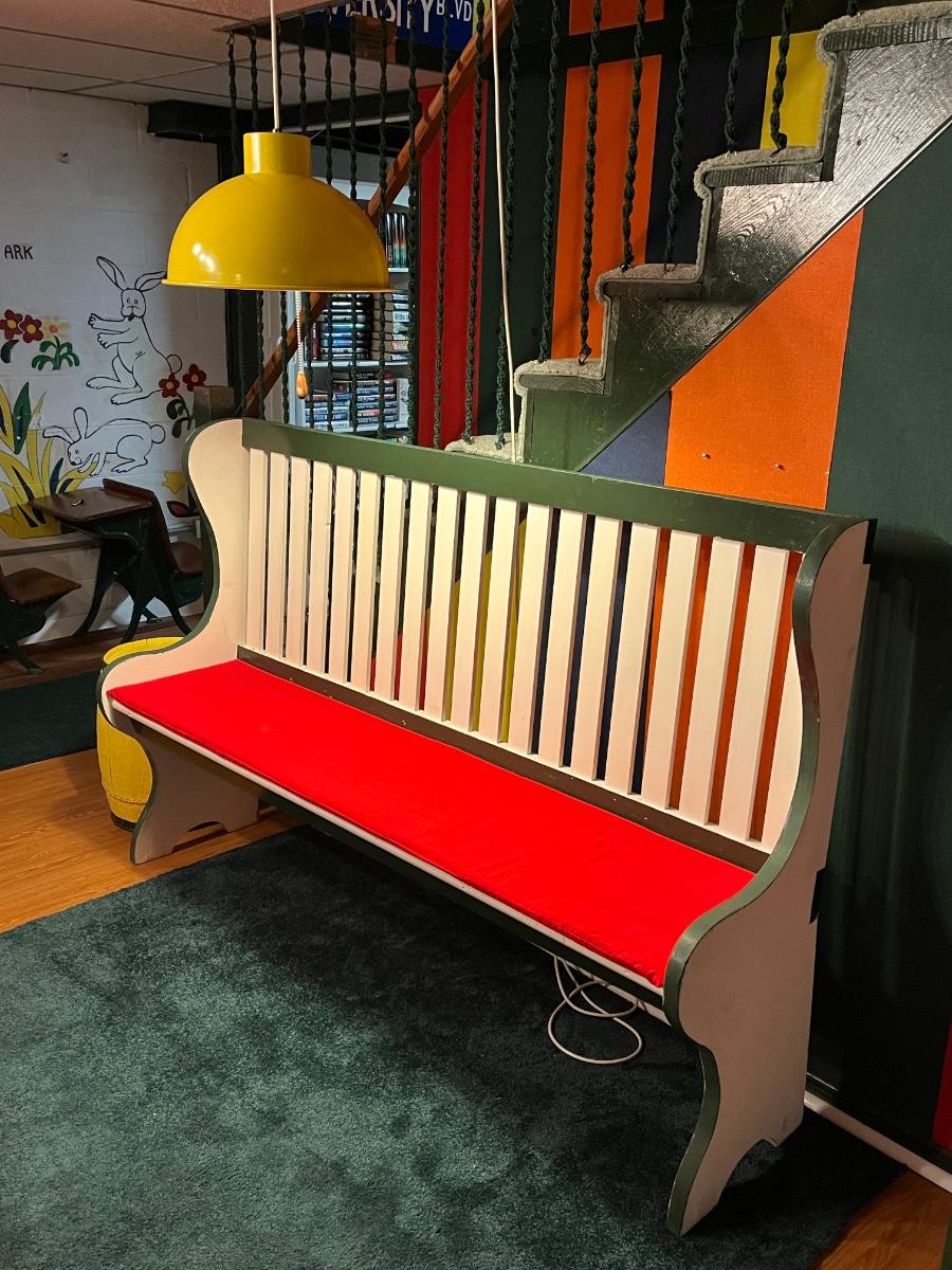 LOT 412B: Bench, Hanging Lamp and Barrel Side Table