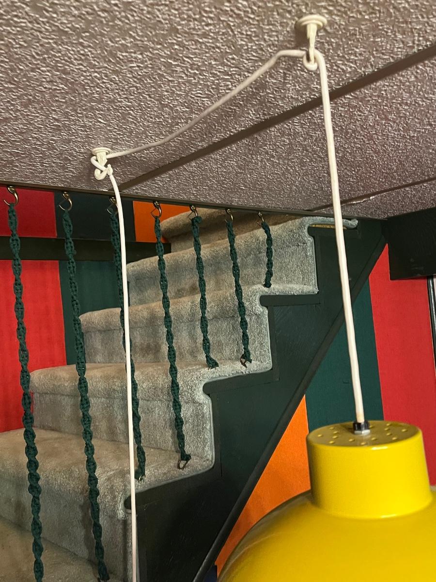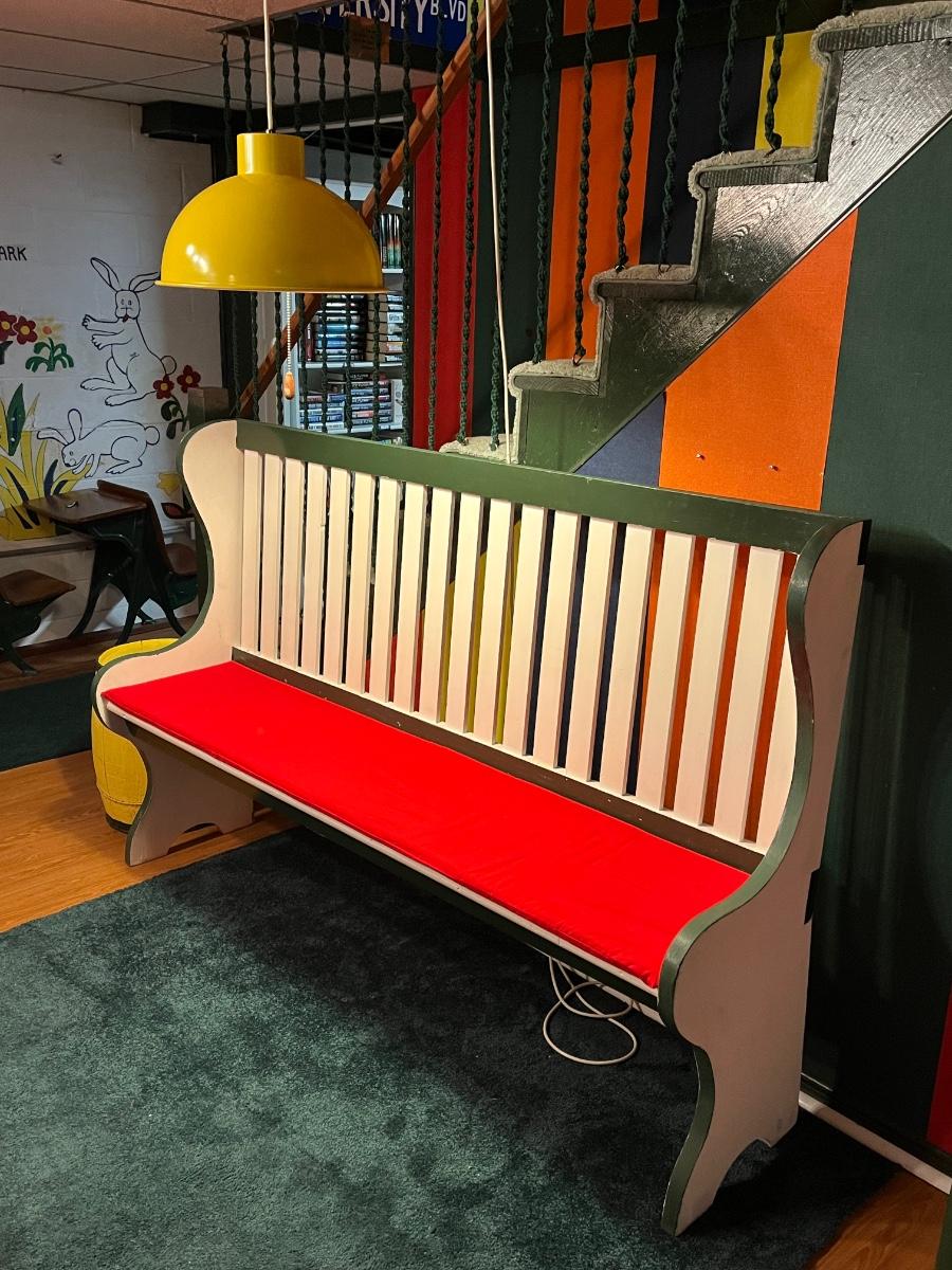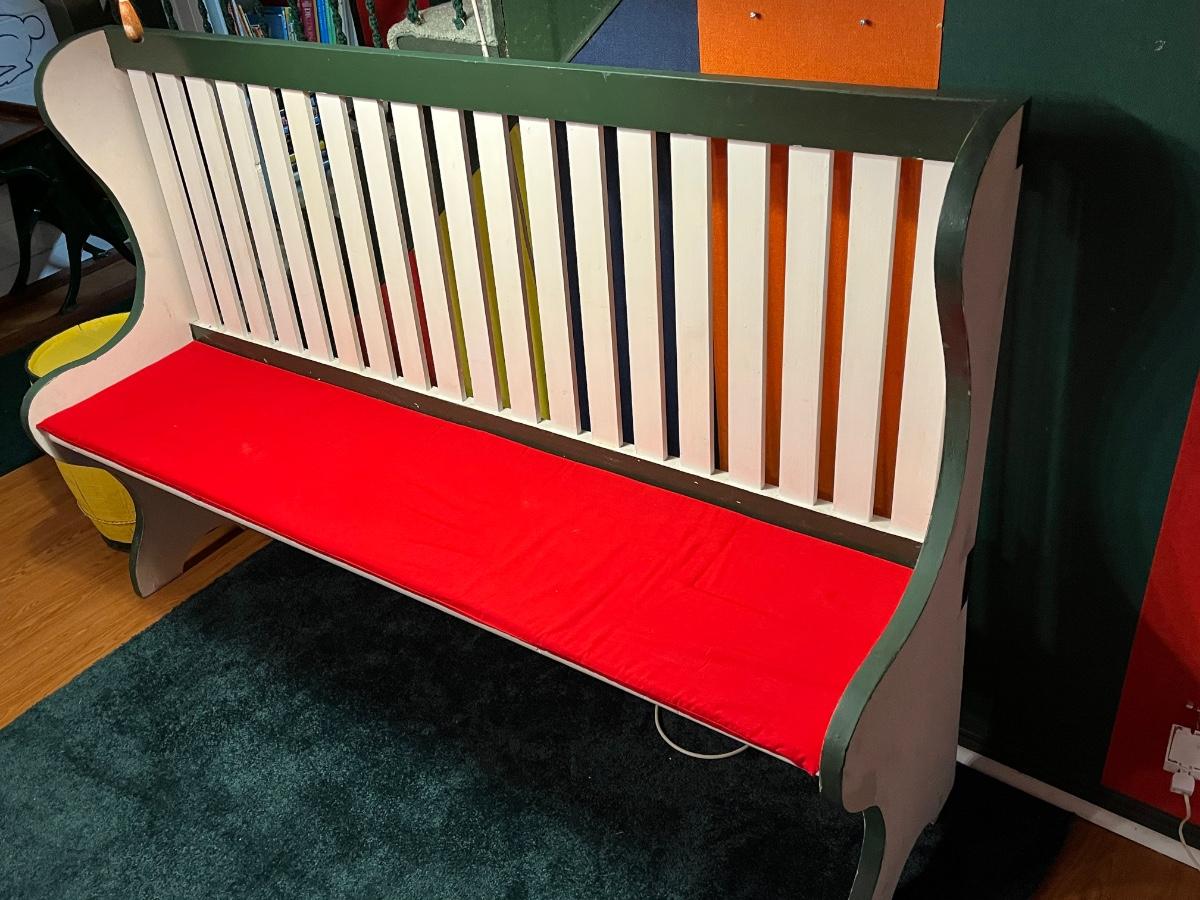 LOT 412B: Bench, Hanging Lamp and Barrel Side Table