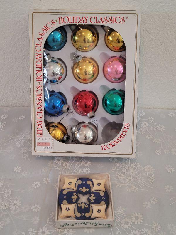 Lot 413: Vintage Mixed Christmas Ornaments (Some Shiny Brites and Others also a Handmade Rocky Mountain Elf Ornament)