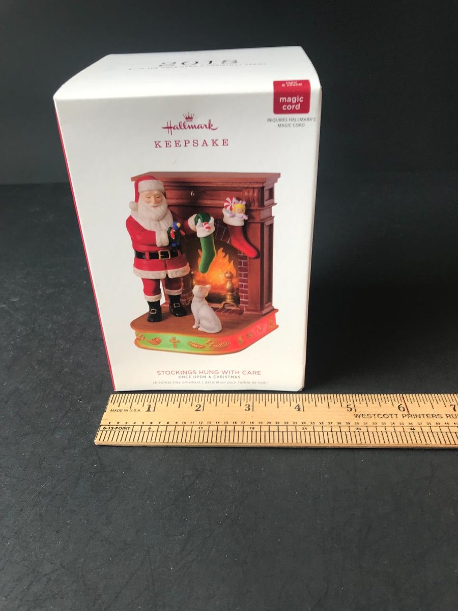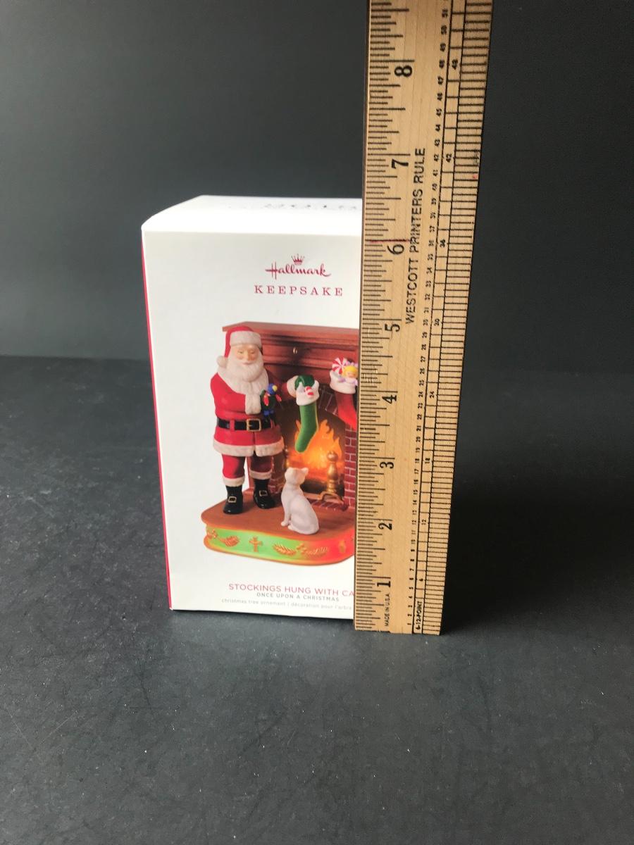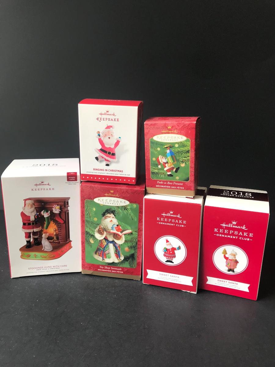 Christmas Ornaments - Santa Claus - Hallmark Keepsake. All Holiday items in this auction are as-seen. The client collected a lot of holiday pieces and some are new in box, some were displayed once and come with original box, and some have been displayed and come with no box. They are all pre-owned in some fashion and have been stored in an attic or on shelf in library. Please see all pictures. The pictures show condition, measurements if taken, and what is included in the lot. Due to the large amount that we photograph and the time frame, we are not always able to take measurements. All items unless noted, are pre-owned and have been used. Thank you