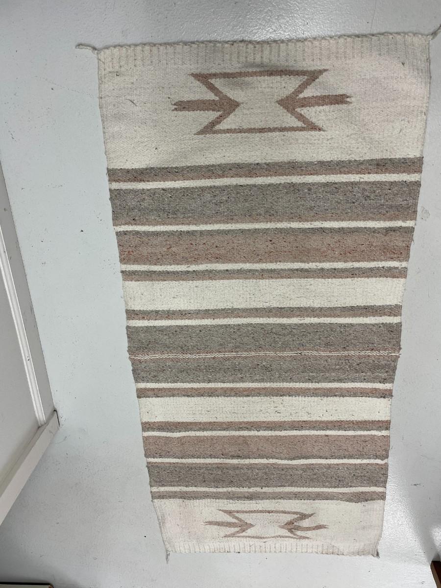 61' X 29". VINTAGE NAVAJO RUG/BLANKET