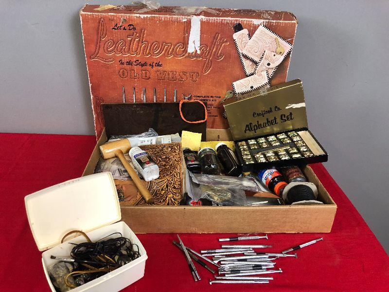 Lot 414 Deluxe leather Crafting kit with lettering set