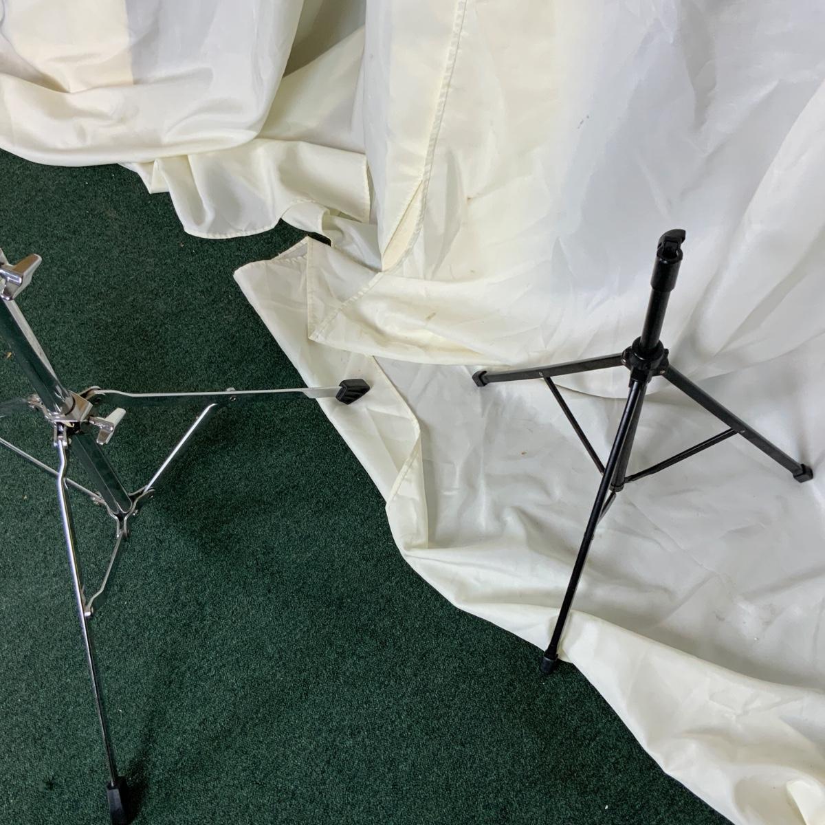 Two drum kit accessory pieces. Do you need these? Do you want these? //::\\ Please see photos for details and condition. No attempt has been made to hide any imperfections. All items listed in this auction are warehouse items, and need to be cleaned. A majority of the items need restoration as well. All items are sold AS IS and WITHOUT GUARANTEE. If you are uncertain about an item, DO NOT BID. Due to the nature of this online auction in-person inspection is HIGHLY recommended. All Sales are FINAL. Pick Up Times are FIRM. Please confirm with your own schedule that you can pick up in the scheduled times listed in the Terms and Conditions. Any questions please message the auctioneer. DO NOT Contact The Harp Gallery.