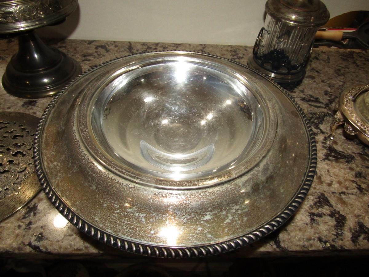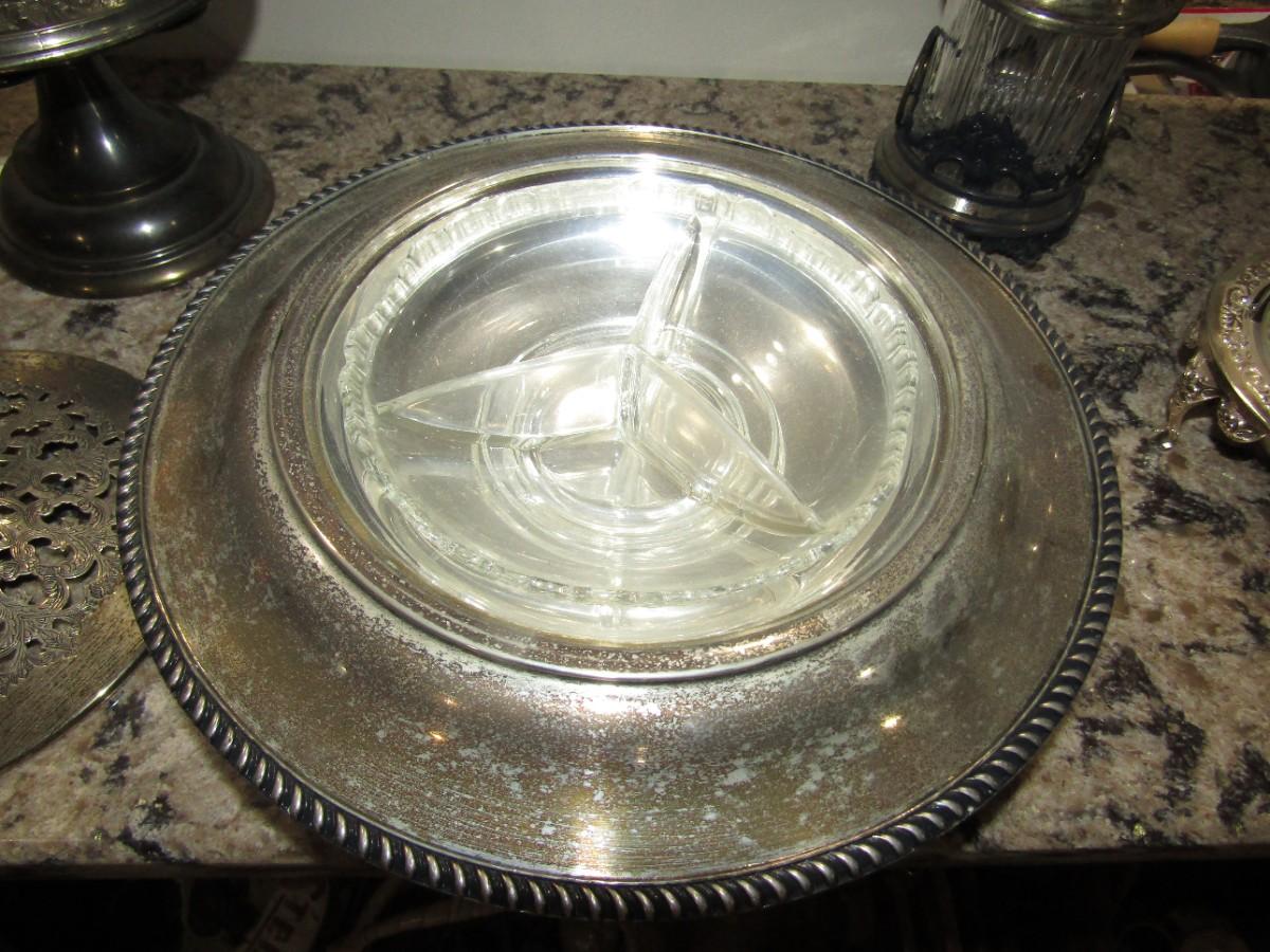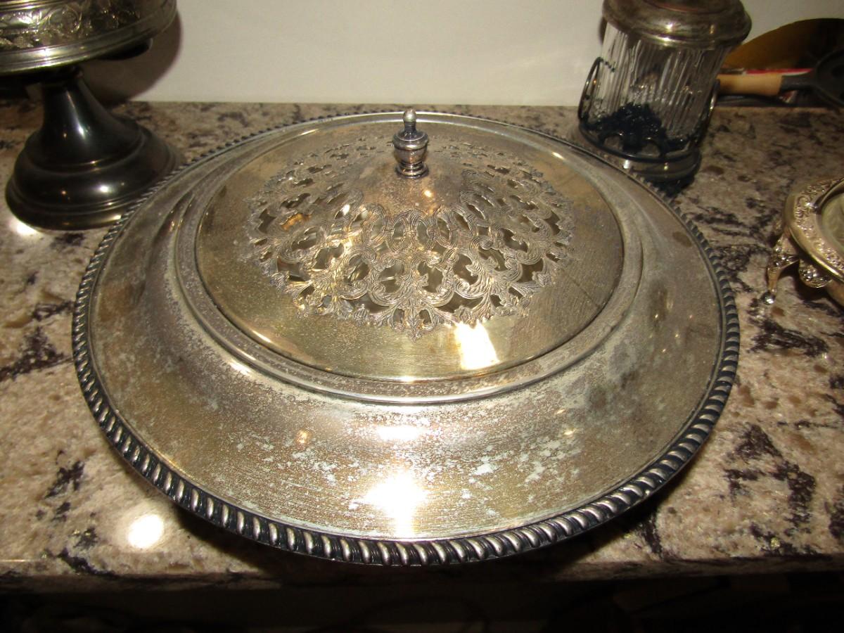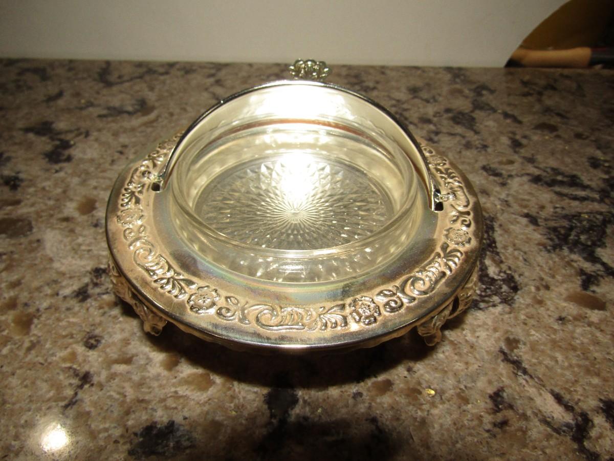SILVERPLATED CASSEROLE SERVER WITH GLASS INSERT