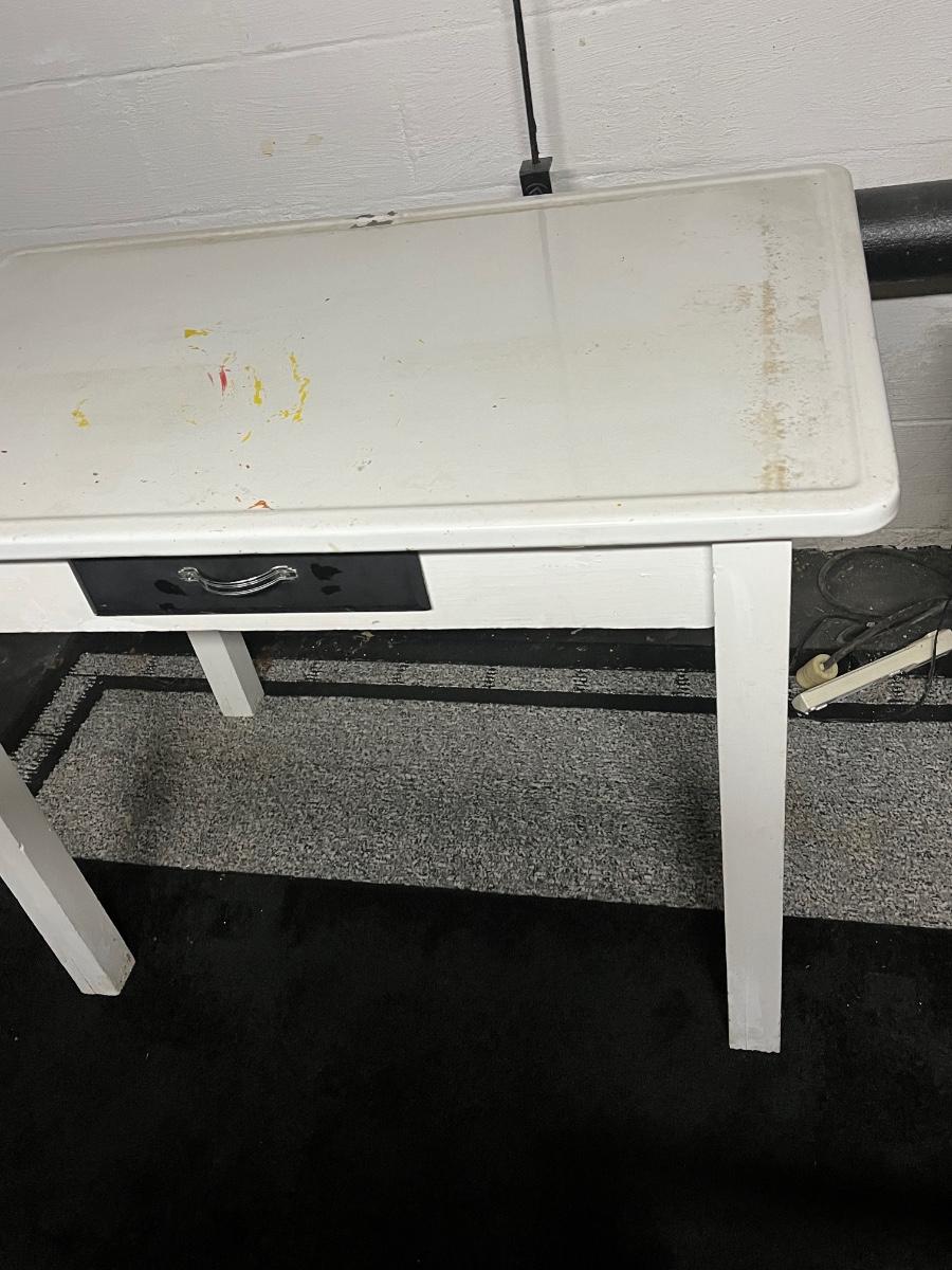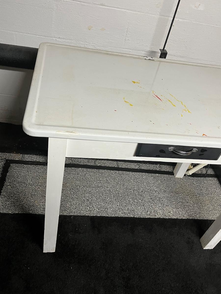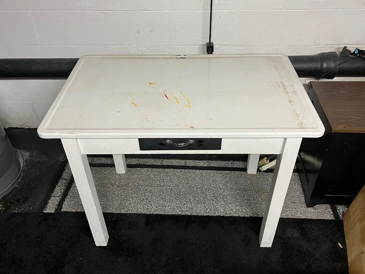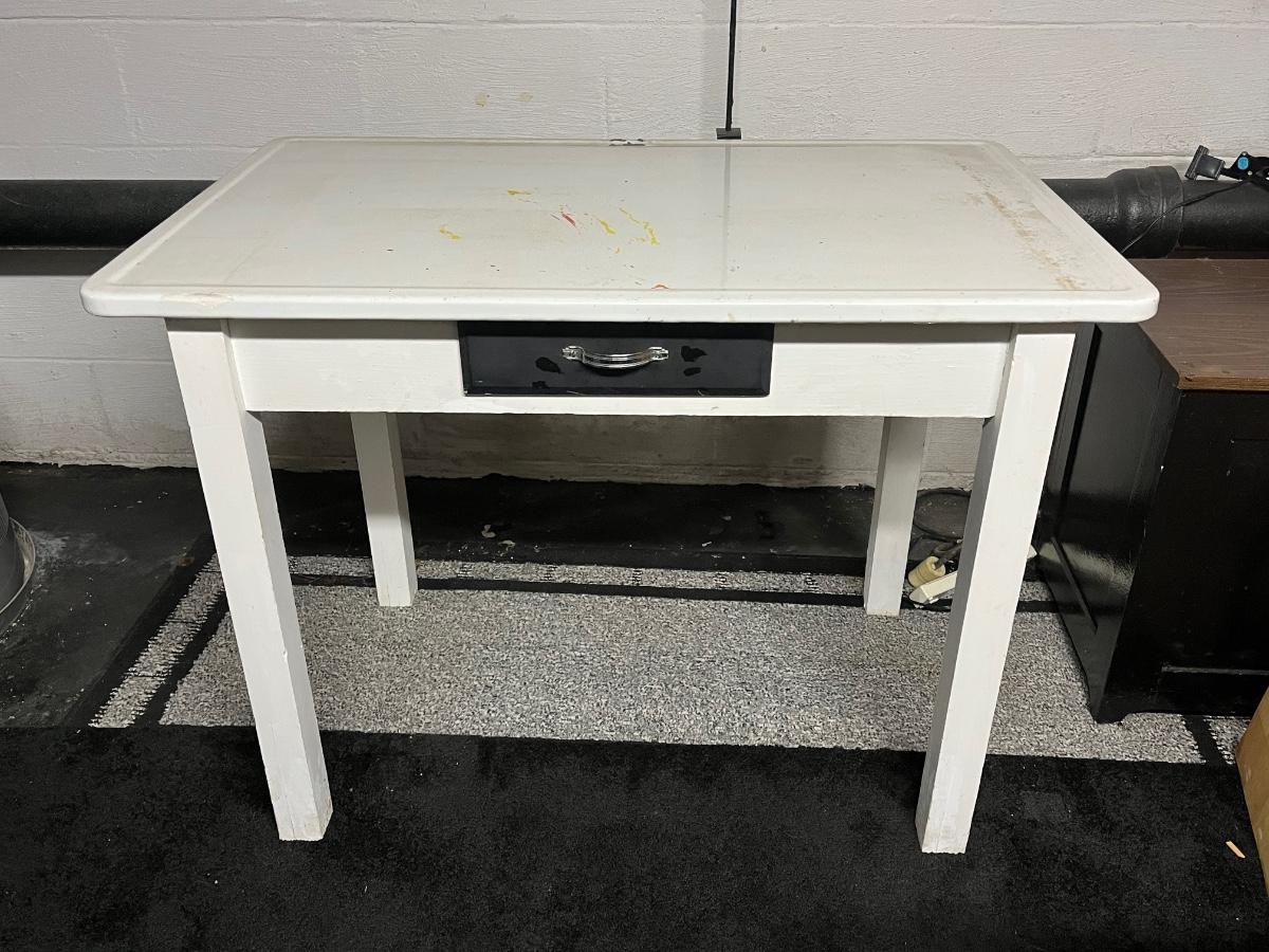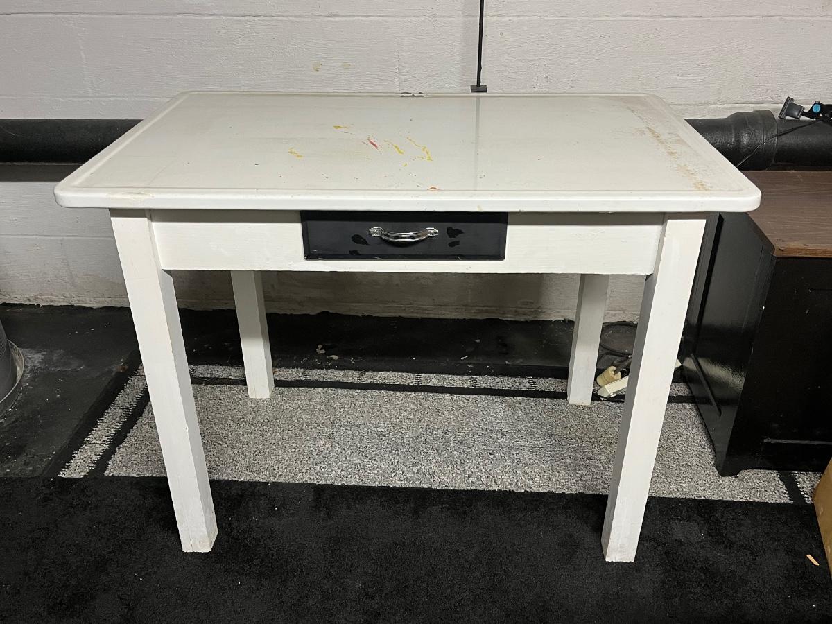 LOT 414B: Vintage Enamel Top Table / Desk with Drawer