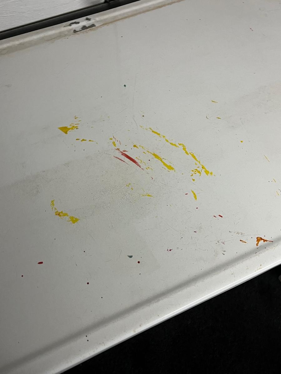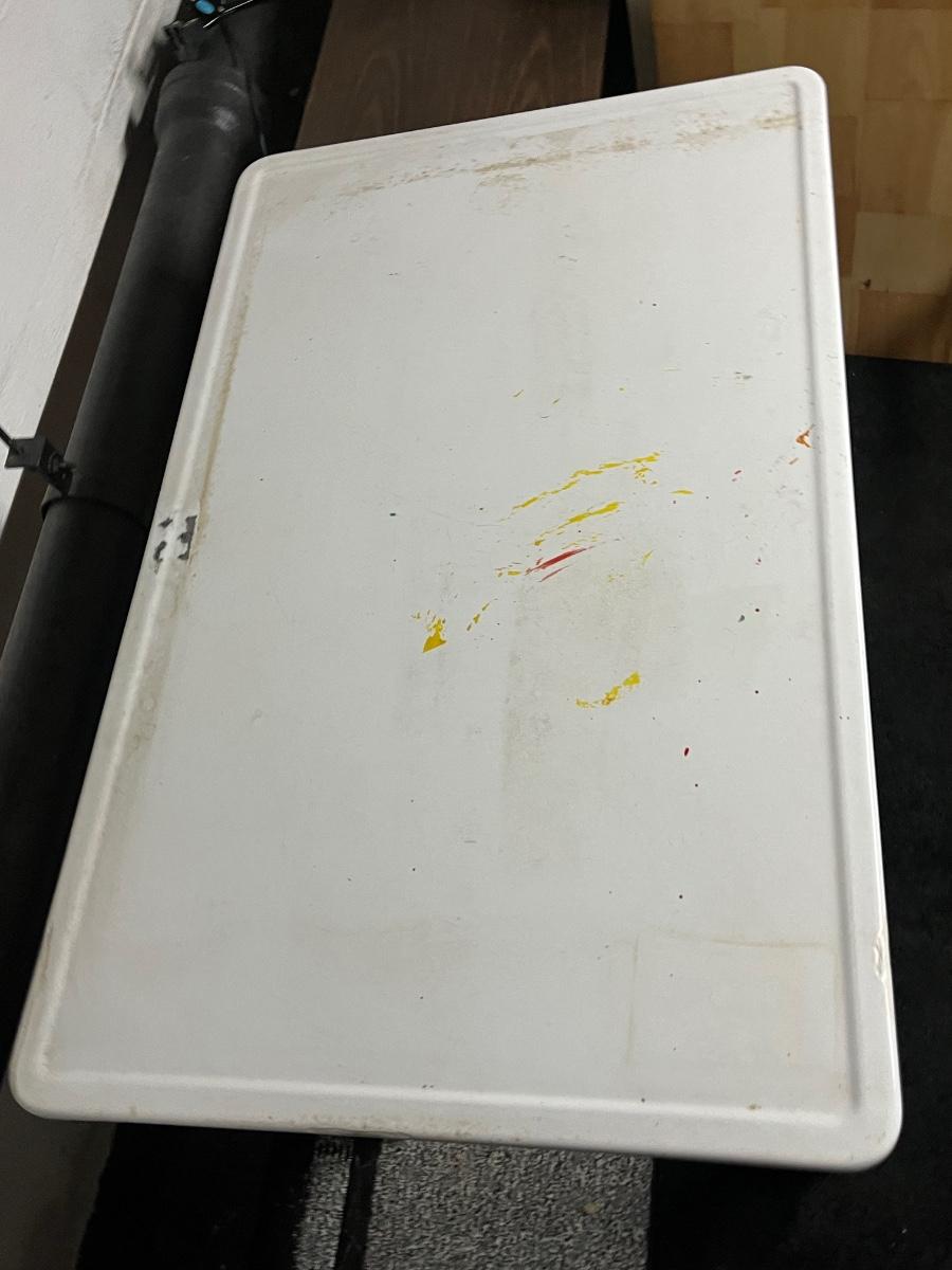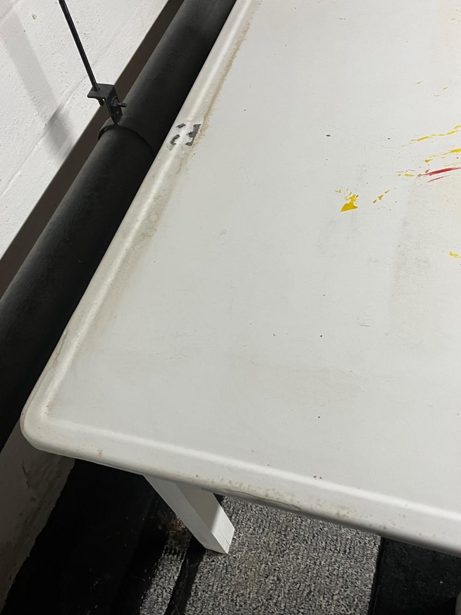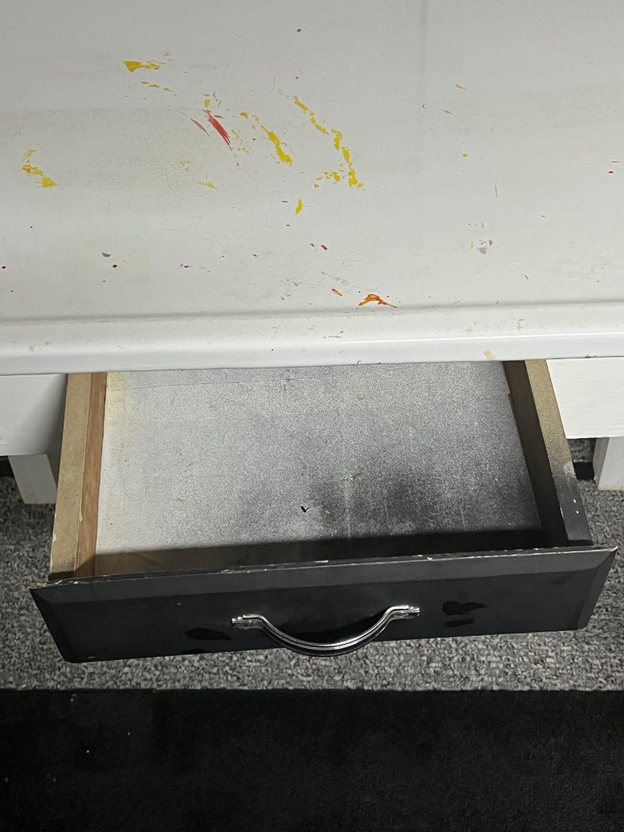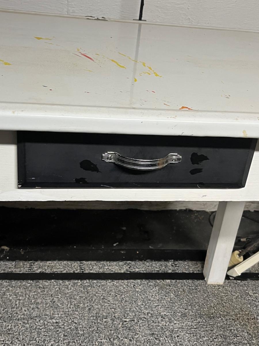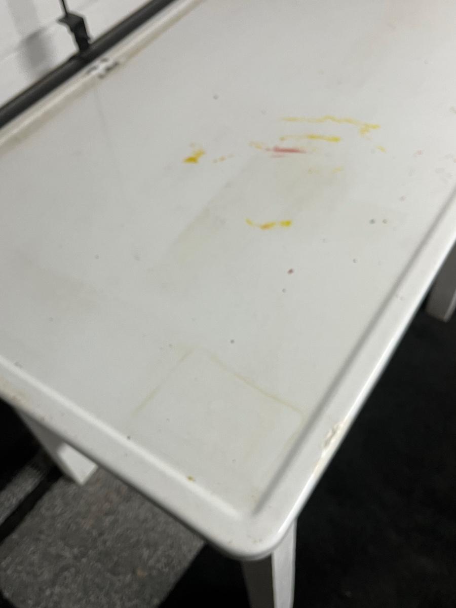 LOT 414B: Vintage Enamel Top Table / Desk with Drawer