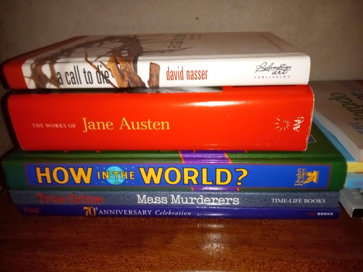 LOT 415 BOOK CASE WITH BOOKS AND A MEDIA STAND (HD)