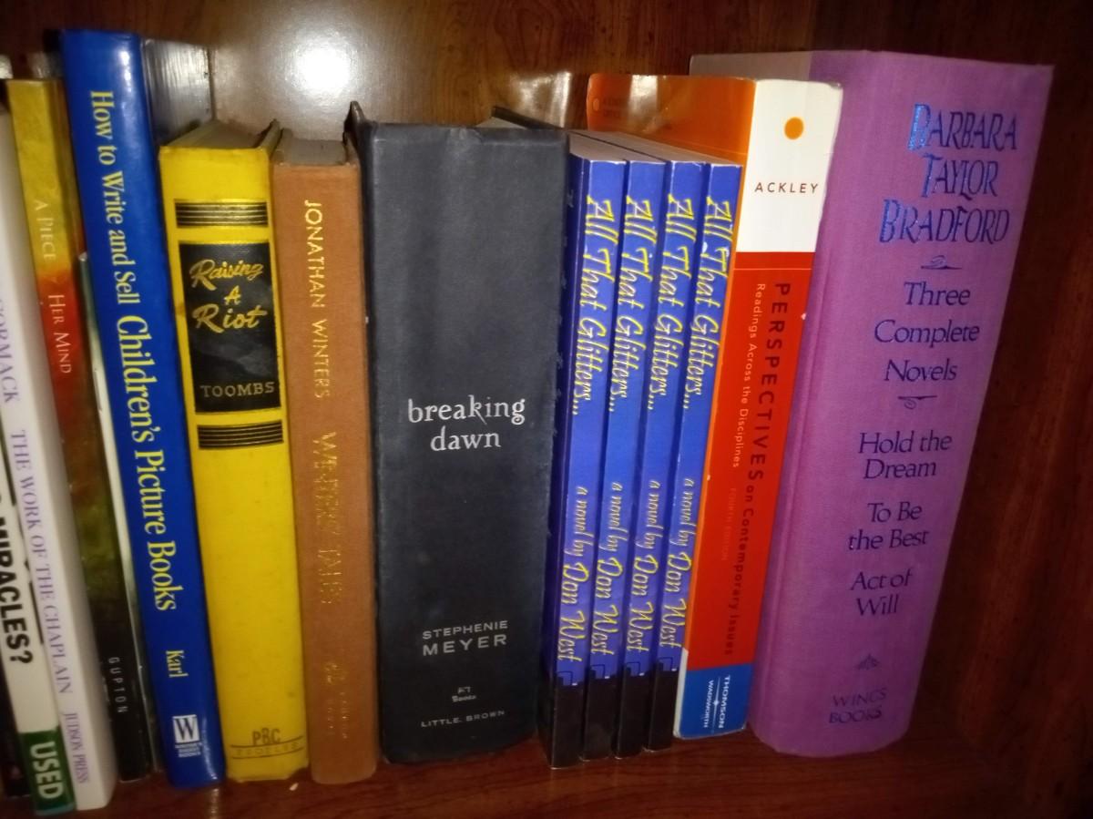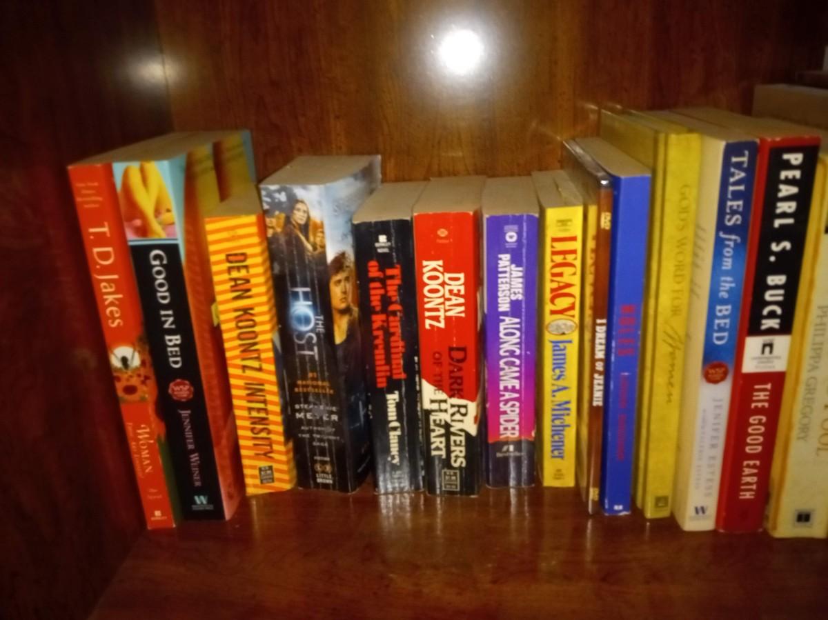 LOT 415  BOOK CASE WITH BOOKS AND A MEDIA STAND  (HD)