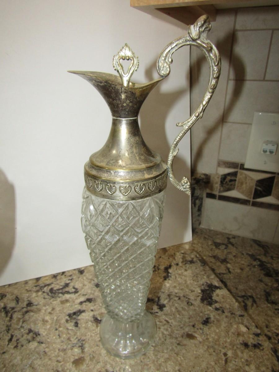 GLASS CARAFE WITH PLATED HANDLE AND NECK