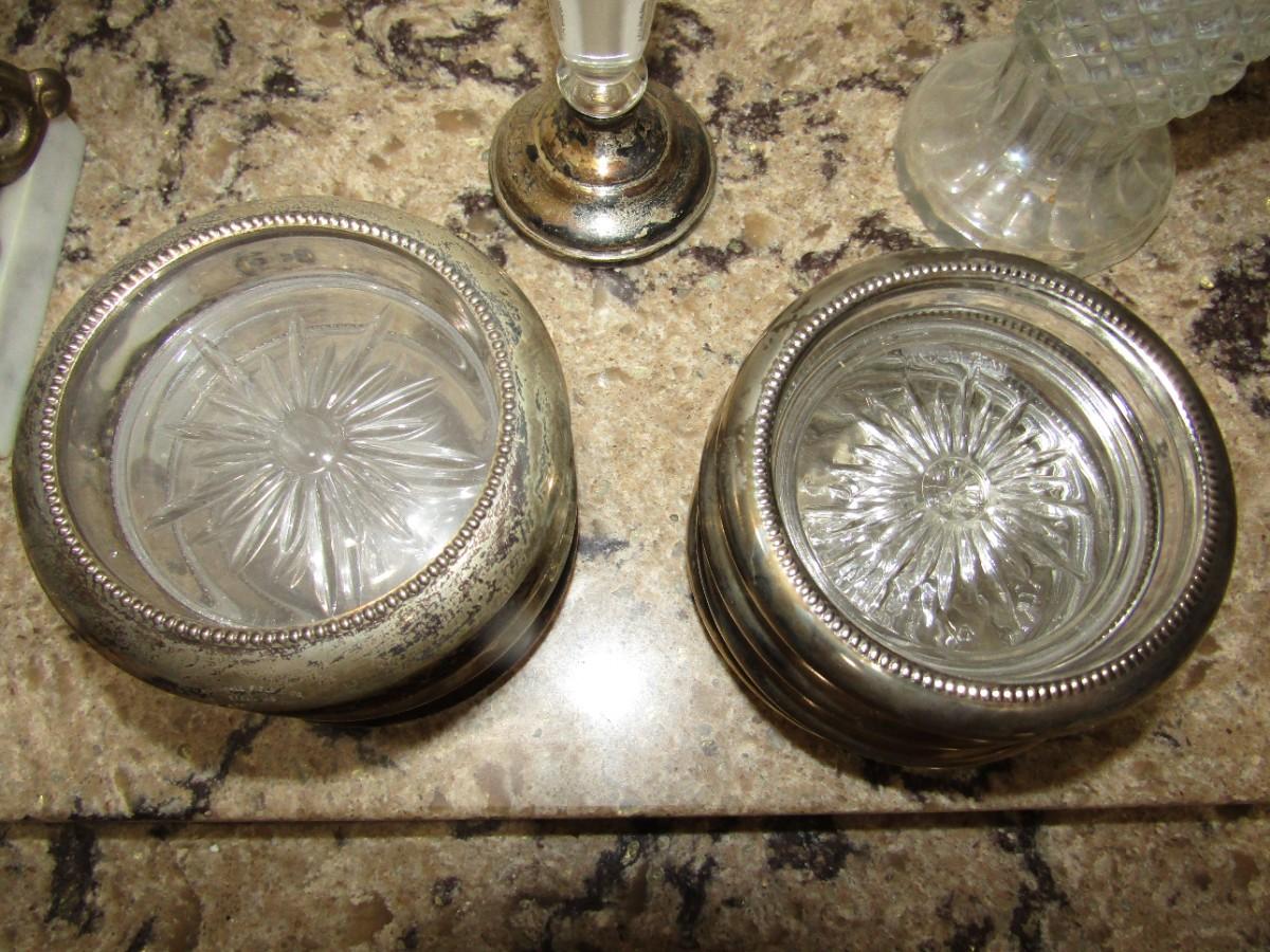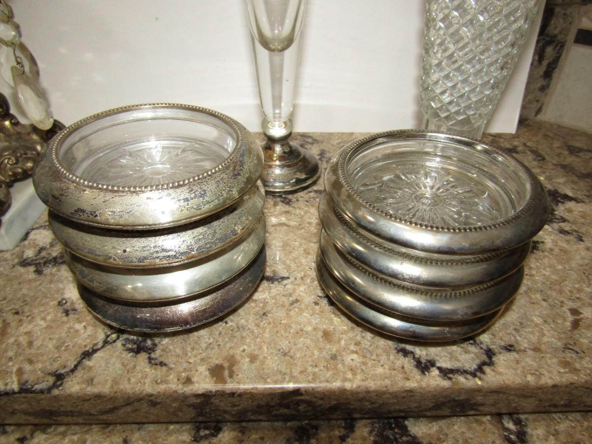 4 OF THE GLASS COASTERS ARE WRAPPED IN STERLING SILVER, THE OTHER 4 ARE PLATED