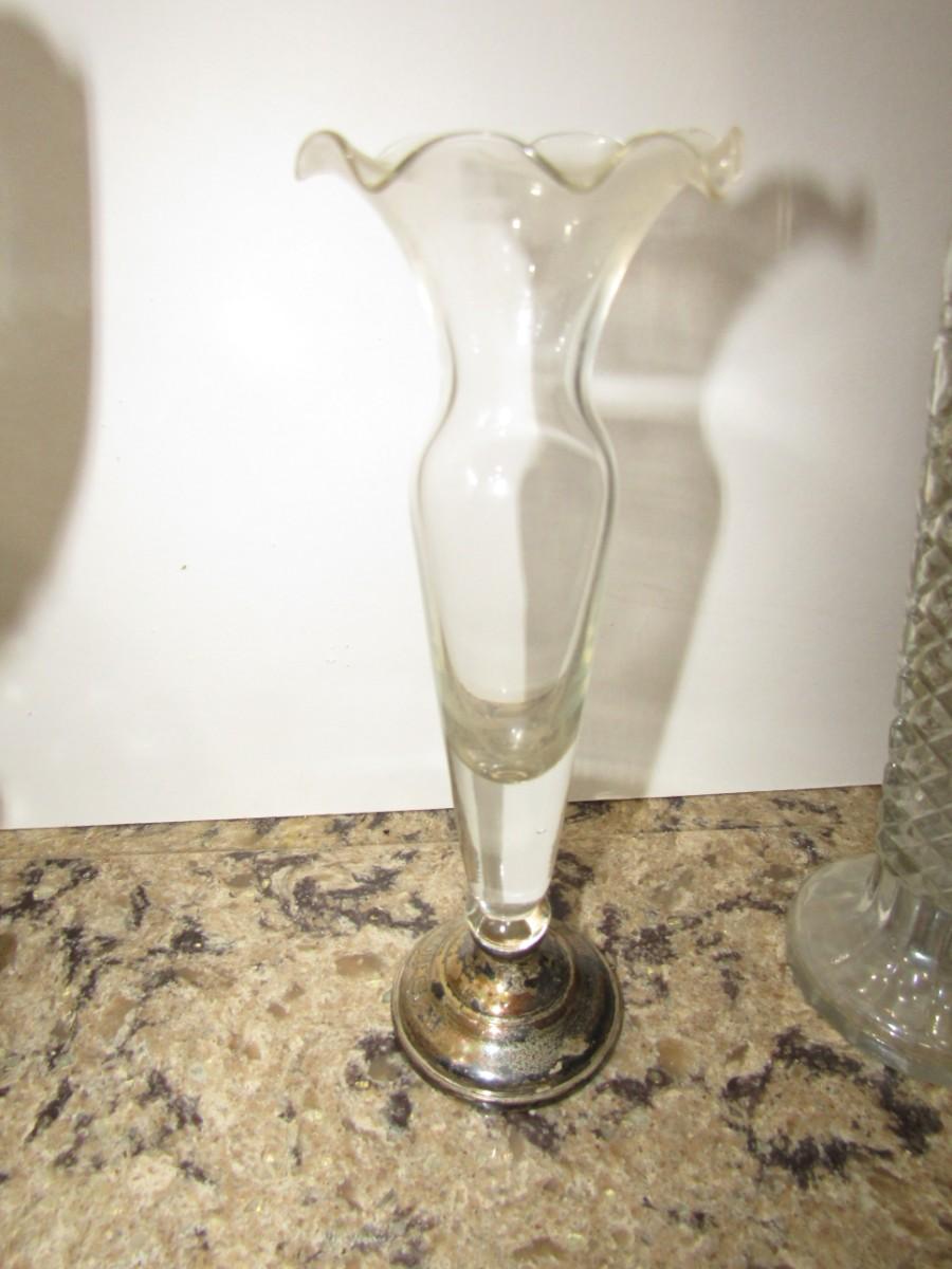 GLASS VASE WITH WEIGHTED STERLING SILVER BASE