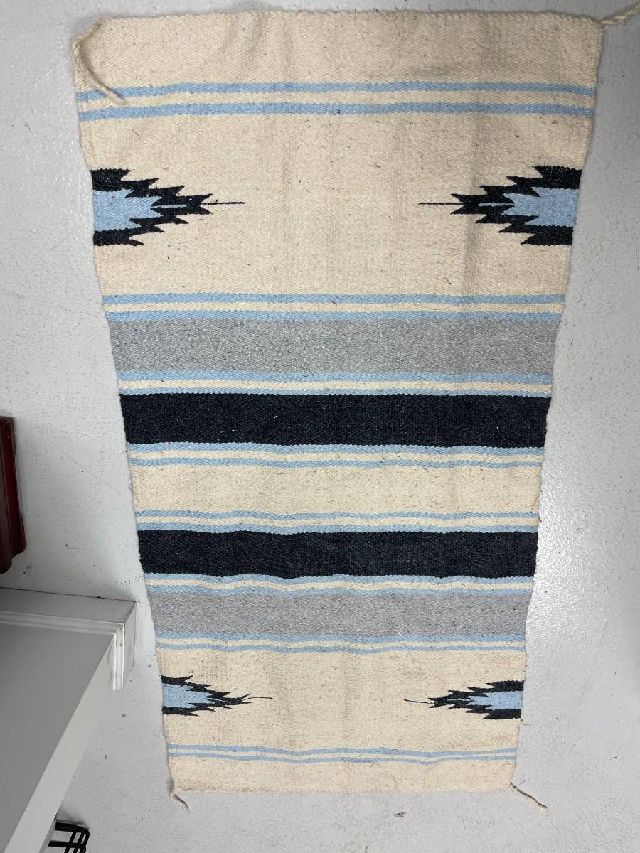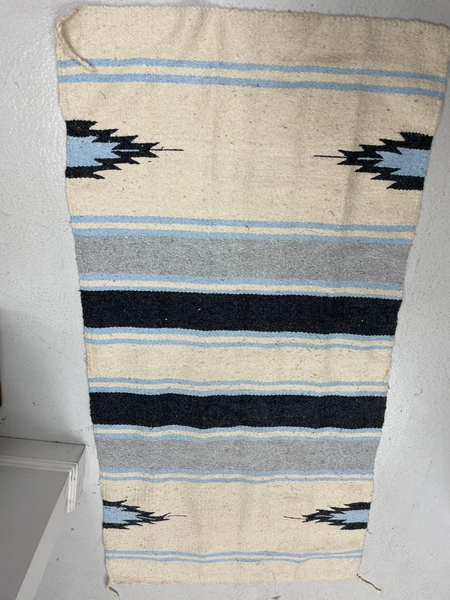 29" X 59". VINTAGE NAVAJO RUG/BLANKET. ITEM MAY NEED TO BE CLEANED