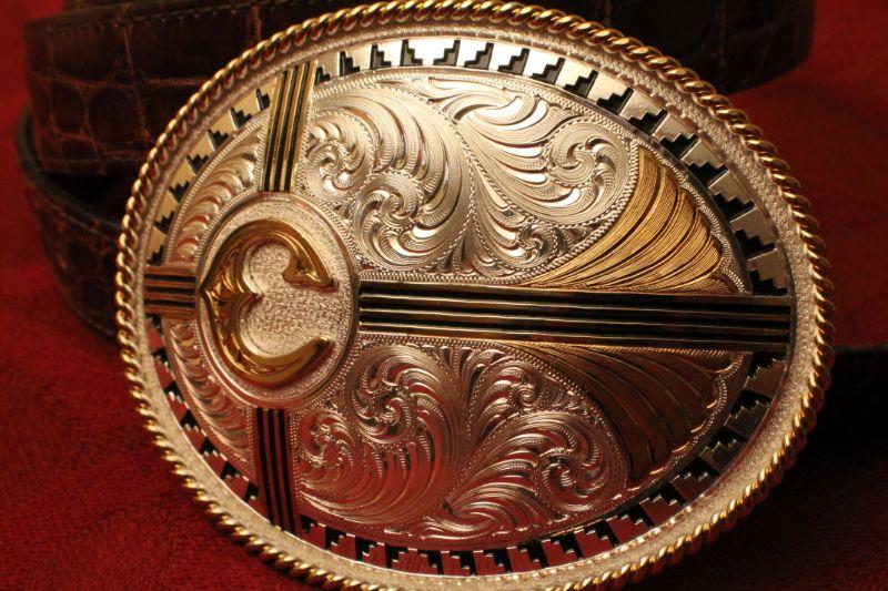 LOT #416: Men's Montana Silversmith'sâ„¢ Belt Buckle w/ Genuine Alligator Brown Belt SIZE 42