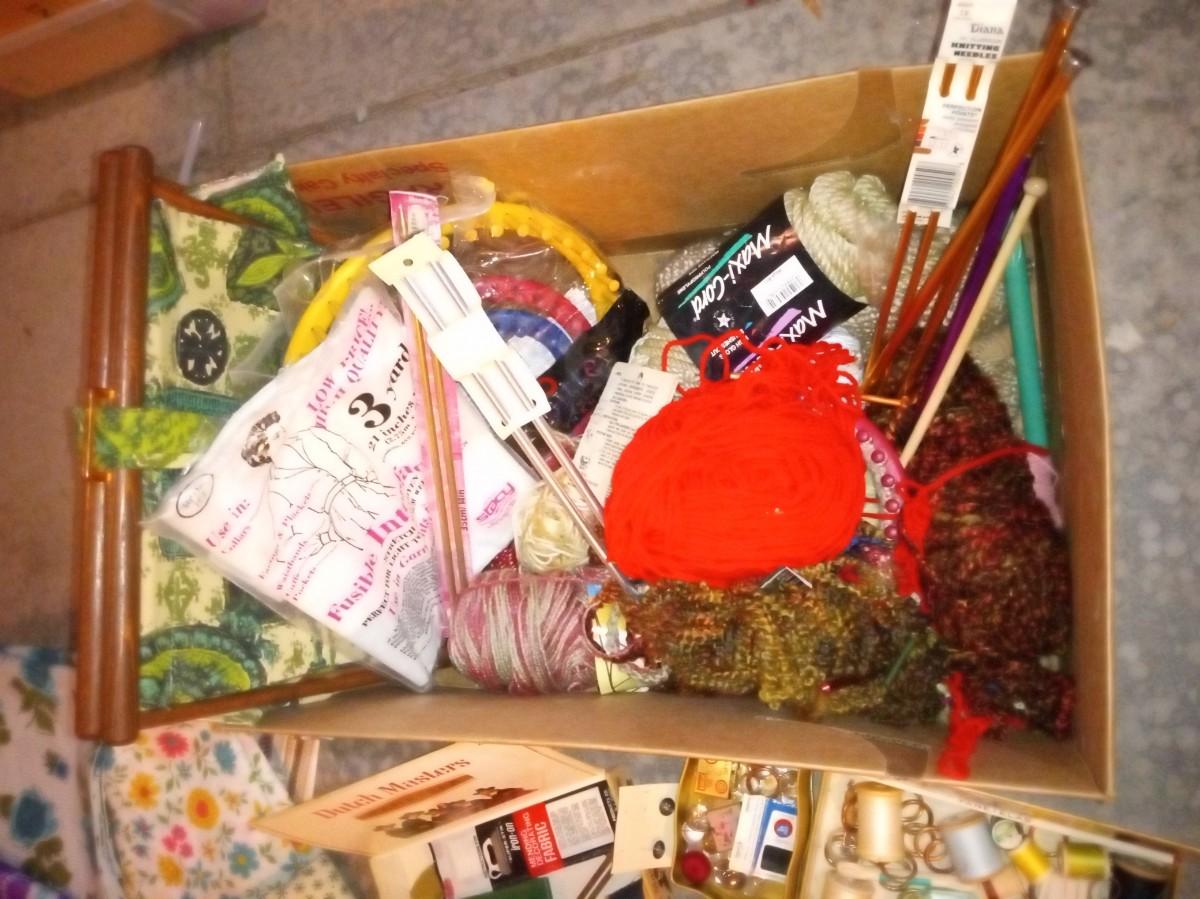 LOT 416  SEWING MATERIAL, YARN, KNITTING NEEDLES, CRAFT ITEMS  (HD)