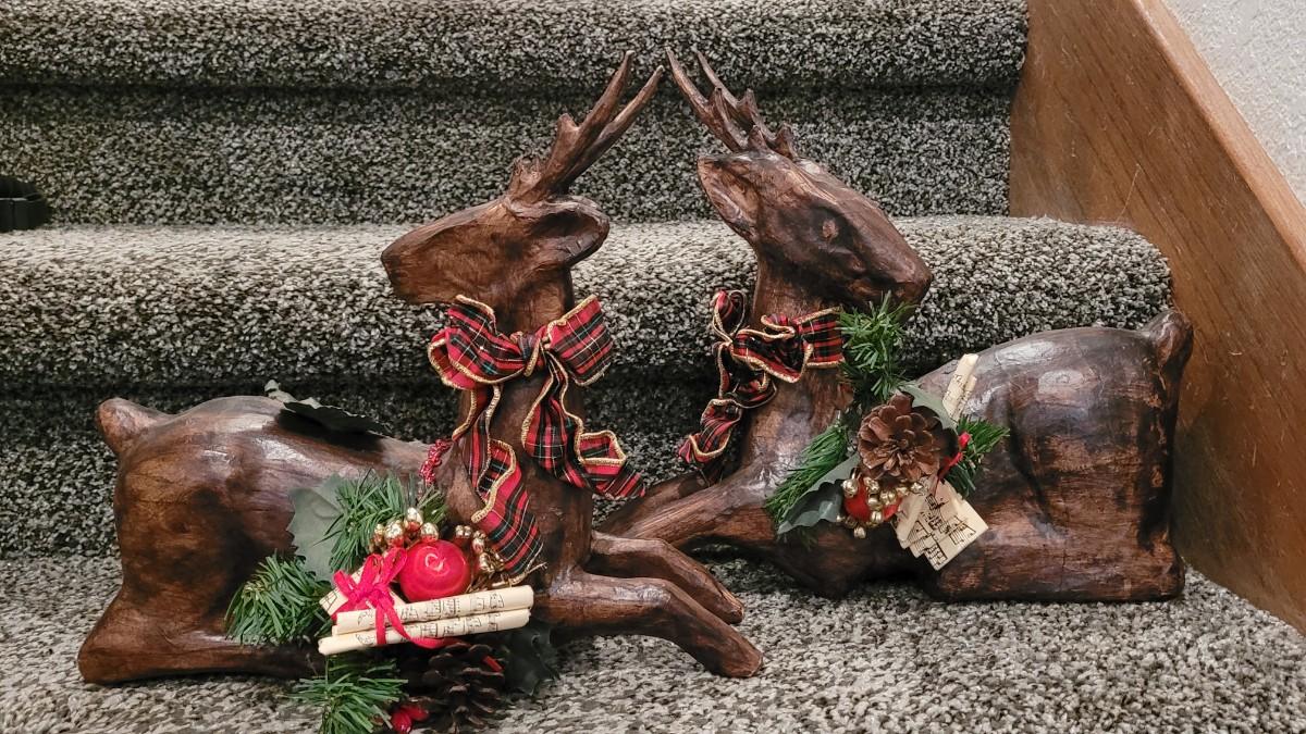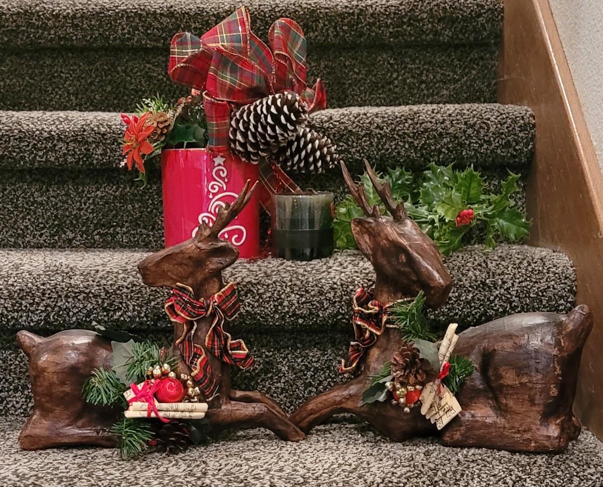 Lot 416: (2) Paper Mache Reindeer, Christmas Vase & Floral Additions