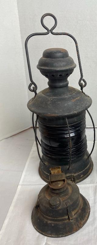 LOT # 416 Antique Red Glass Railroad Lantern with Burner