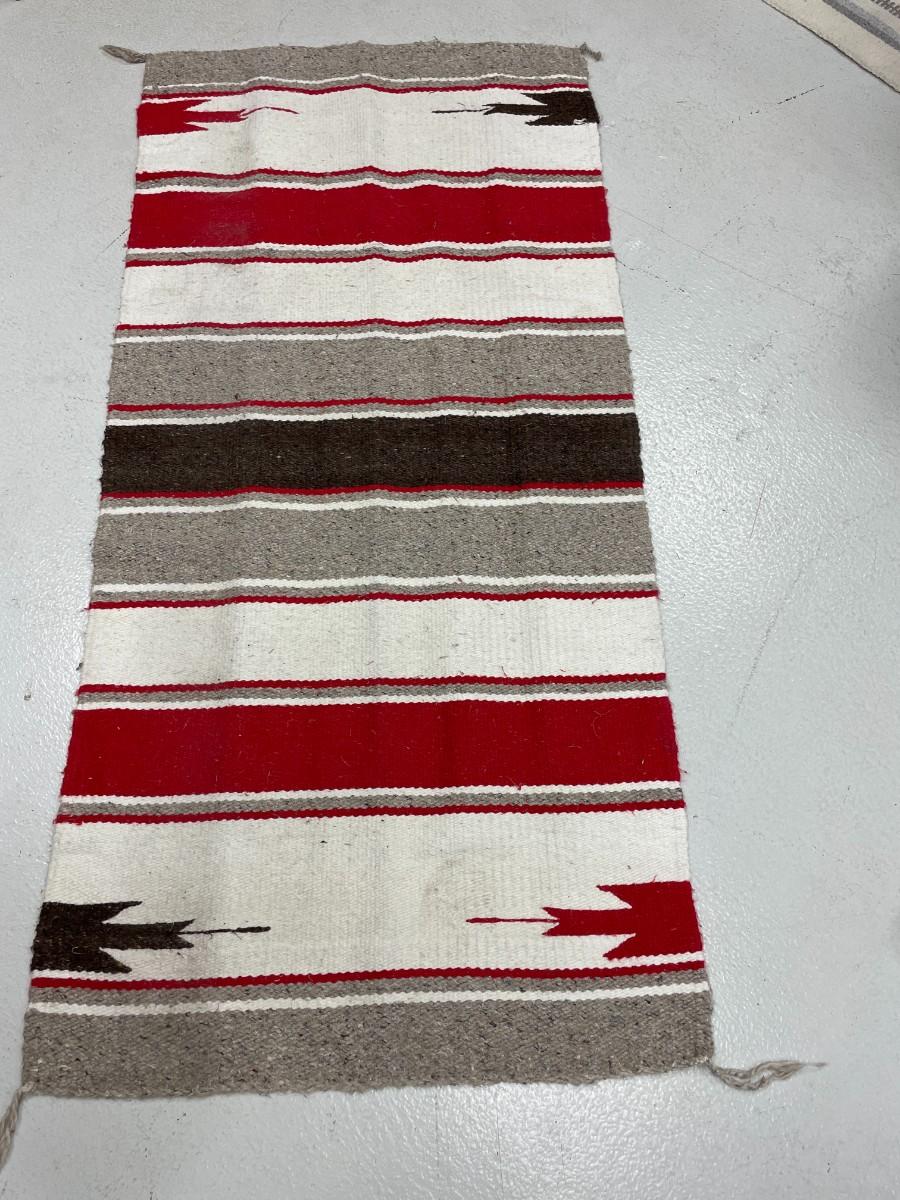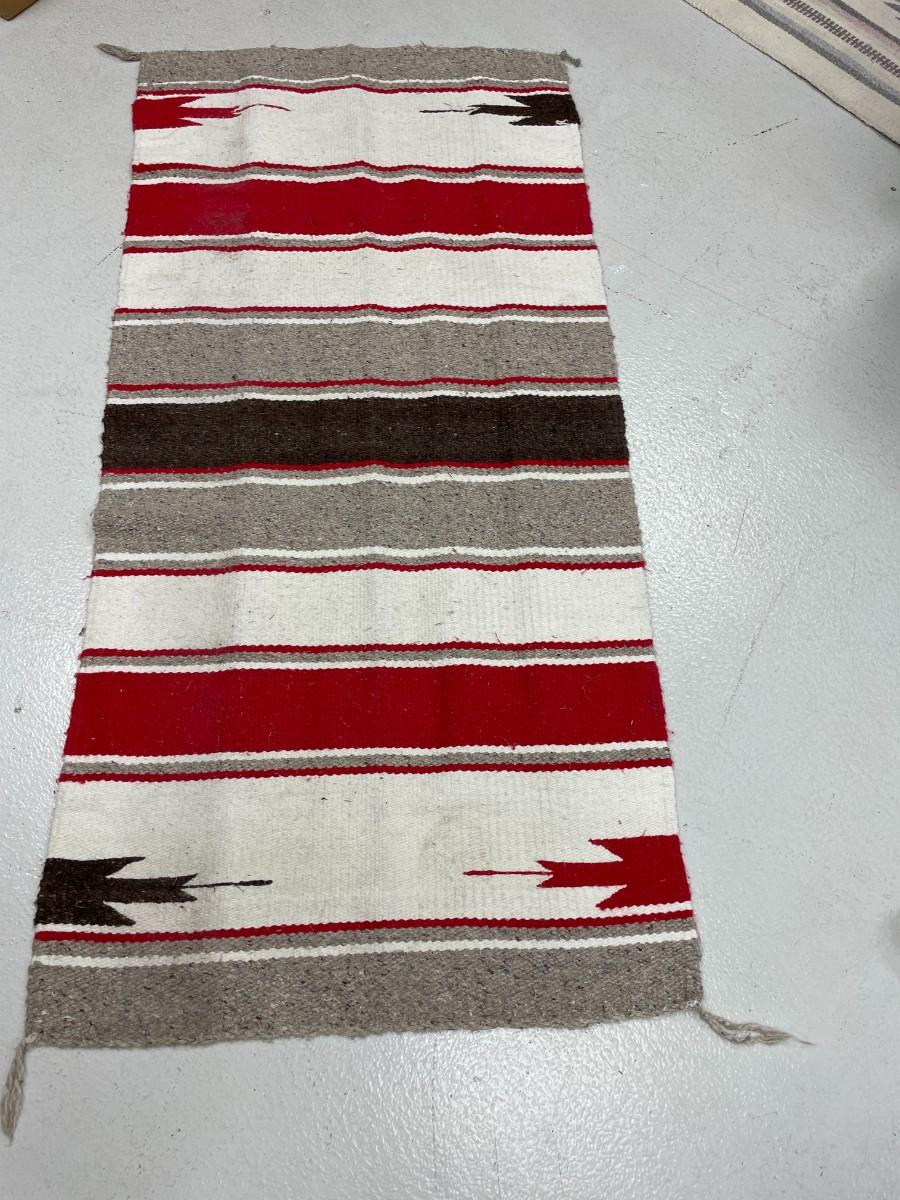 29" X 60". VINTAGE NAVAJO RUG/BLANKET. ITEM MAY NEED TO BE CLEANED