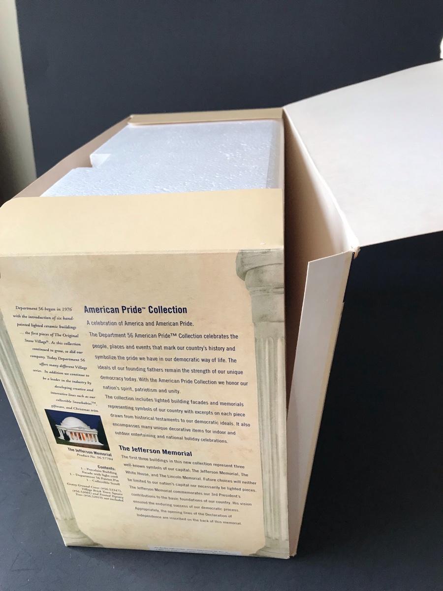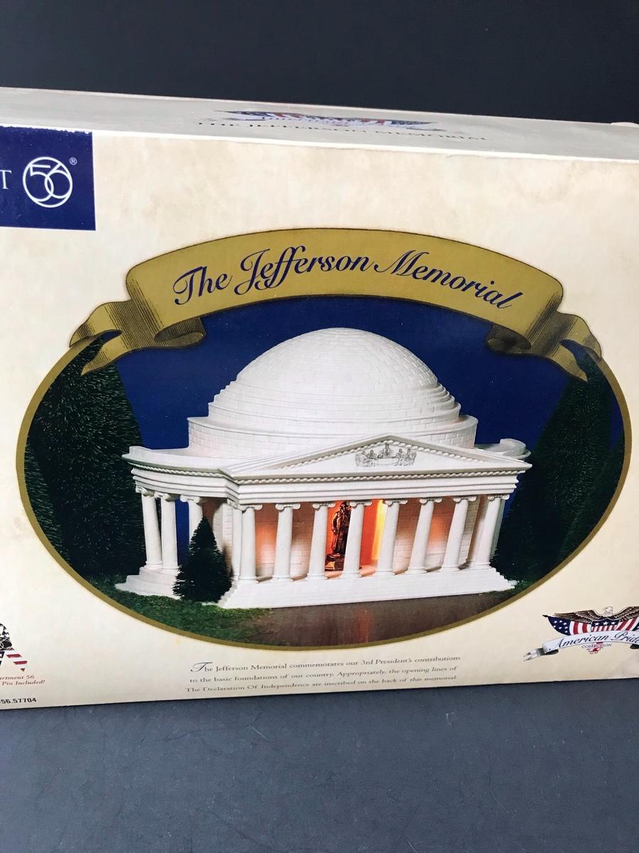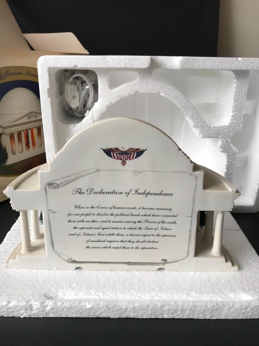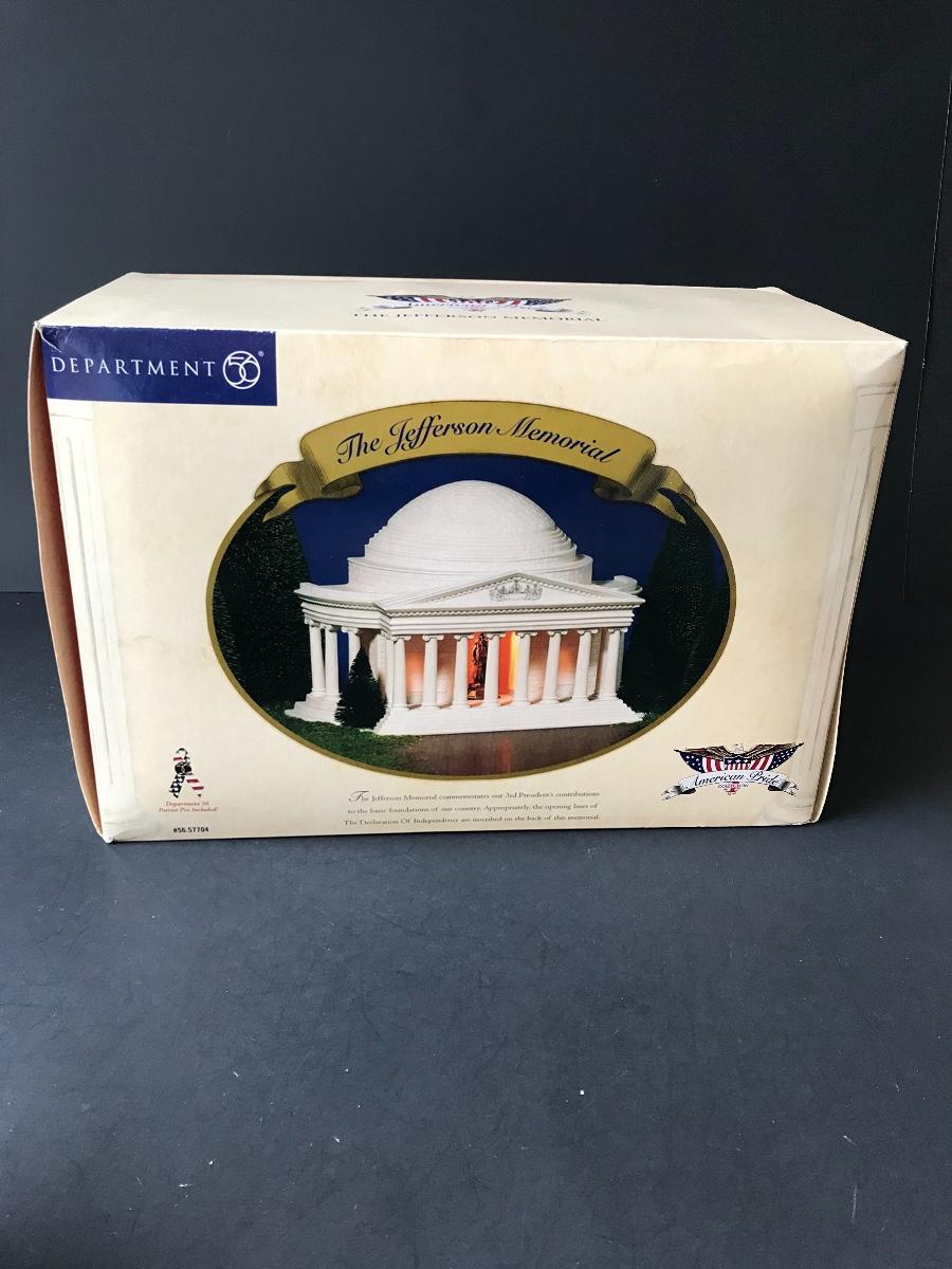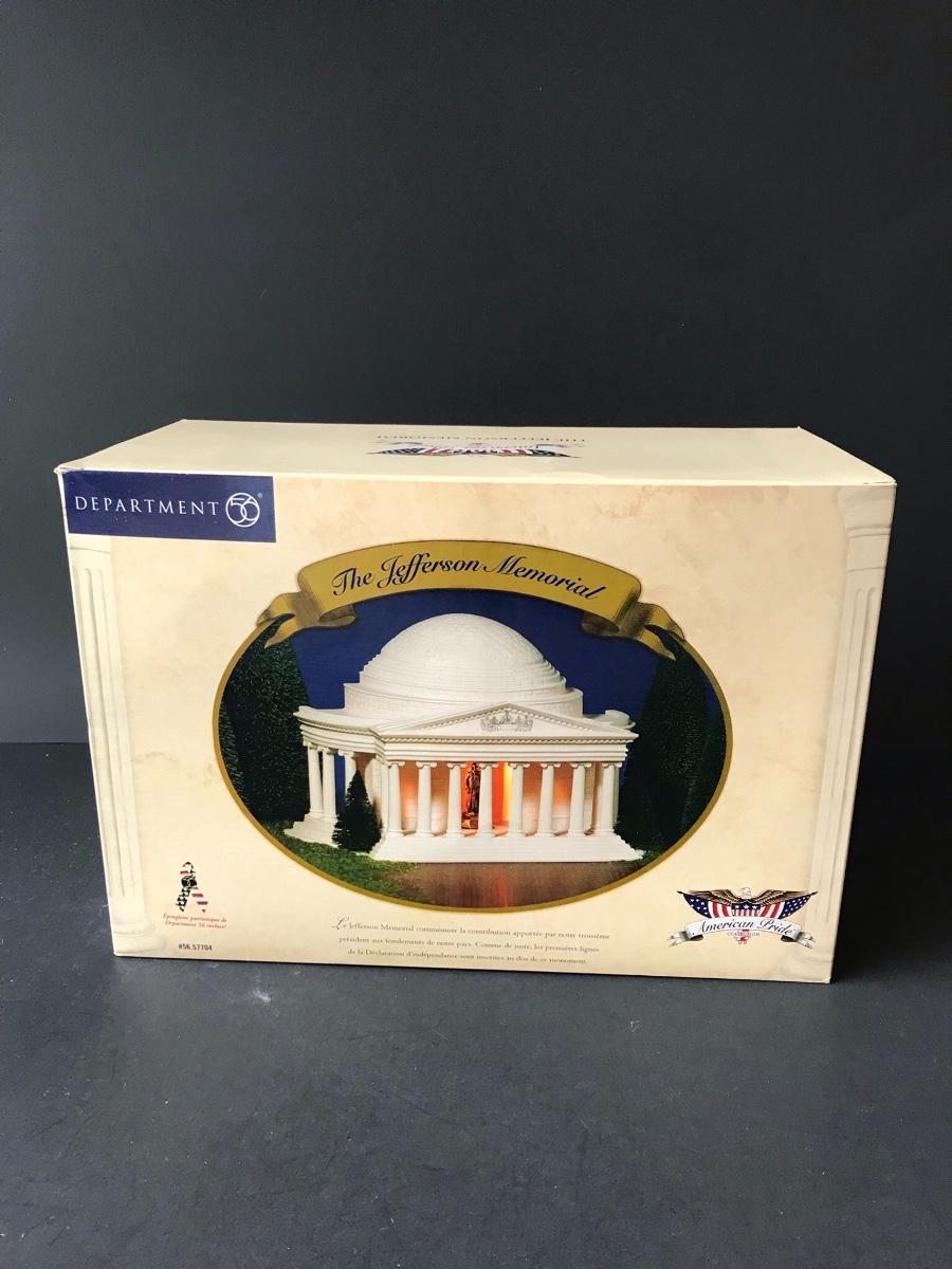 Jefferson Memorial - Department 56 - American Pride. All Holiday items in this auction are as-seen. The client collected a lot of holiday pieces and some are new in box, some were displayed once and come with original box, and some have been displayed and come with no box. They are all pre-owned in some fashion and have been stored in an attic or on shelf in library. Please see all pictures. The pictures show condition, measurements if taken, and what is included in the lot. Due to the large amount that we photograph and the time frame, we are not always able to take measurements. All items unless noted, are pre-owned and have been used. Thank you
