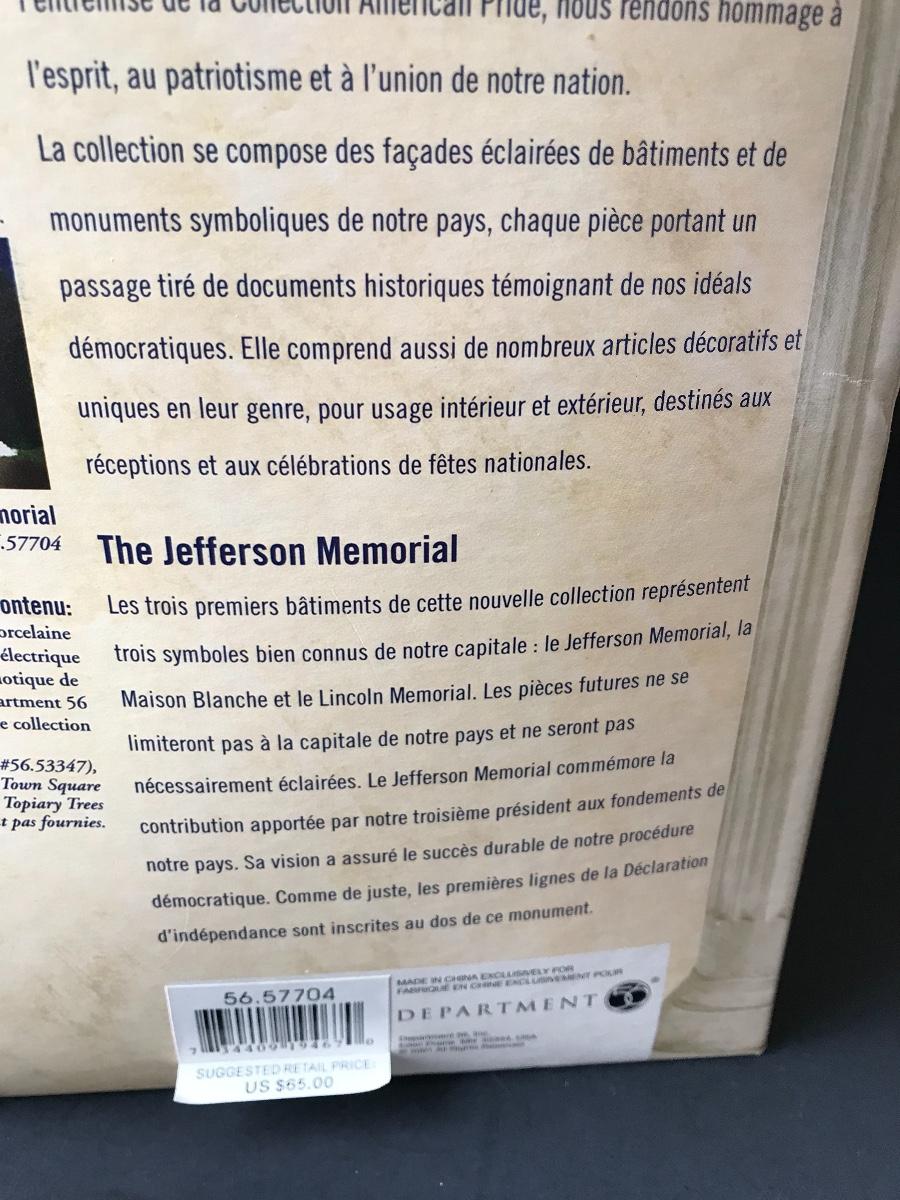 Lot 417: Jefferson Memorial - Department 56 - American Pride