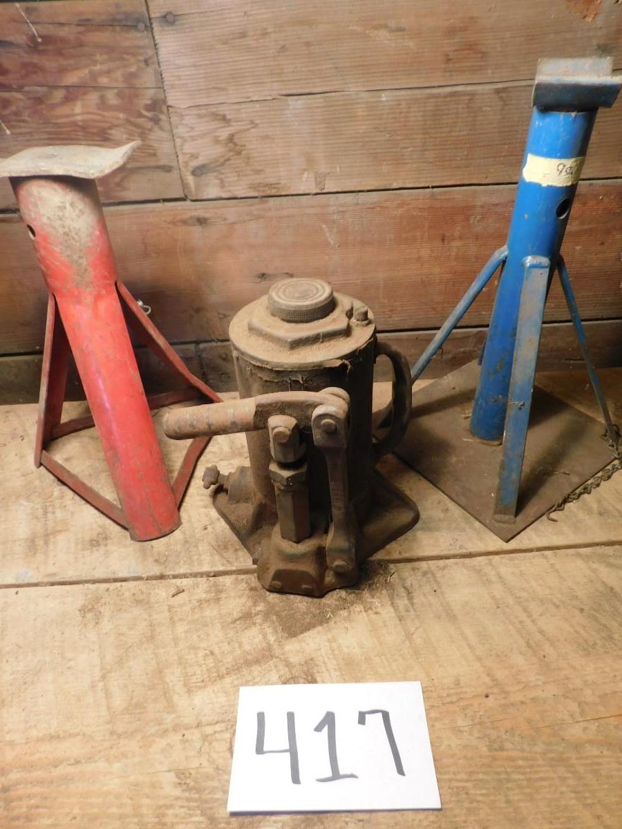 LOT 417  BOTTLE JACK AND JACK STANDS