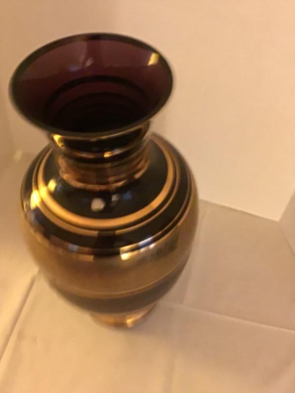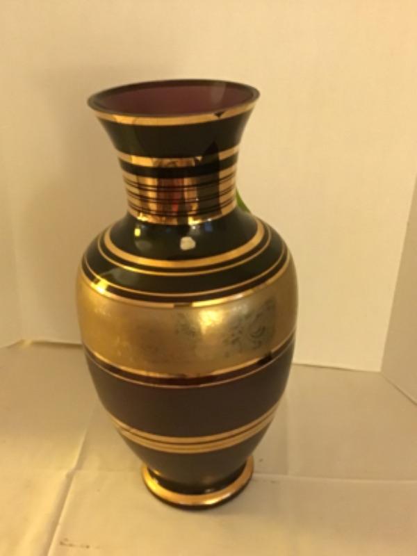 LOT # 417 Antique Czechoslovakia Amethyst Gold Vase