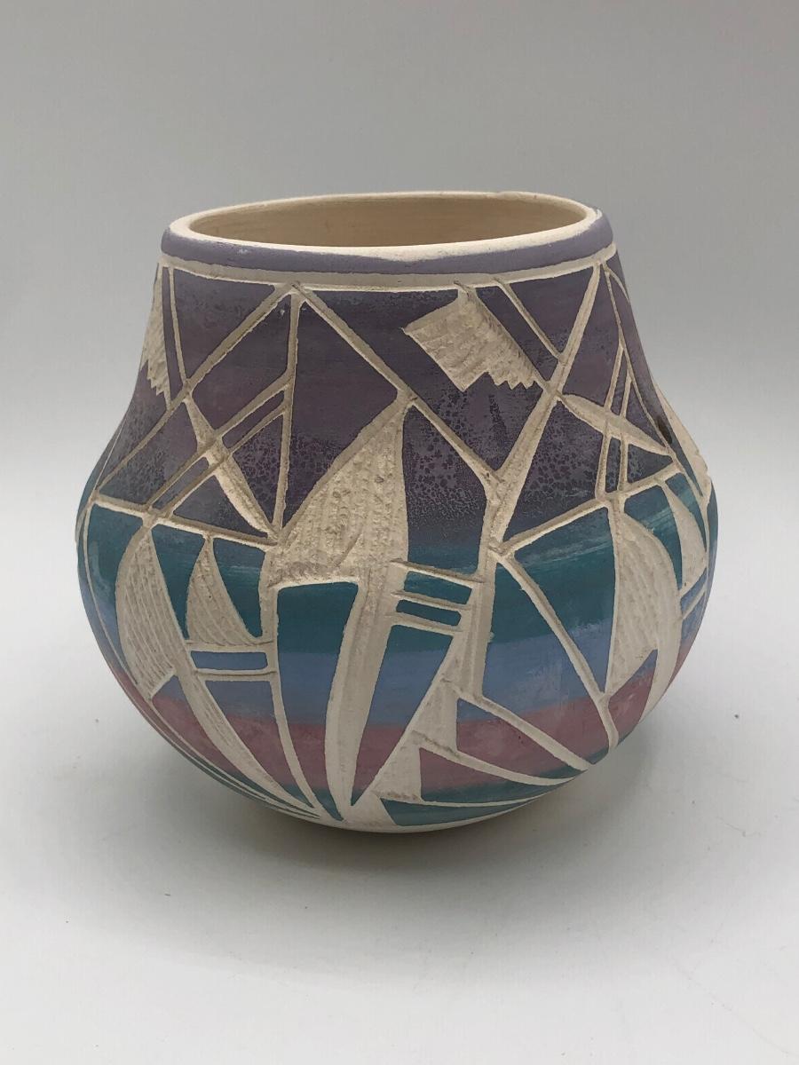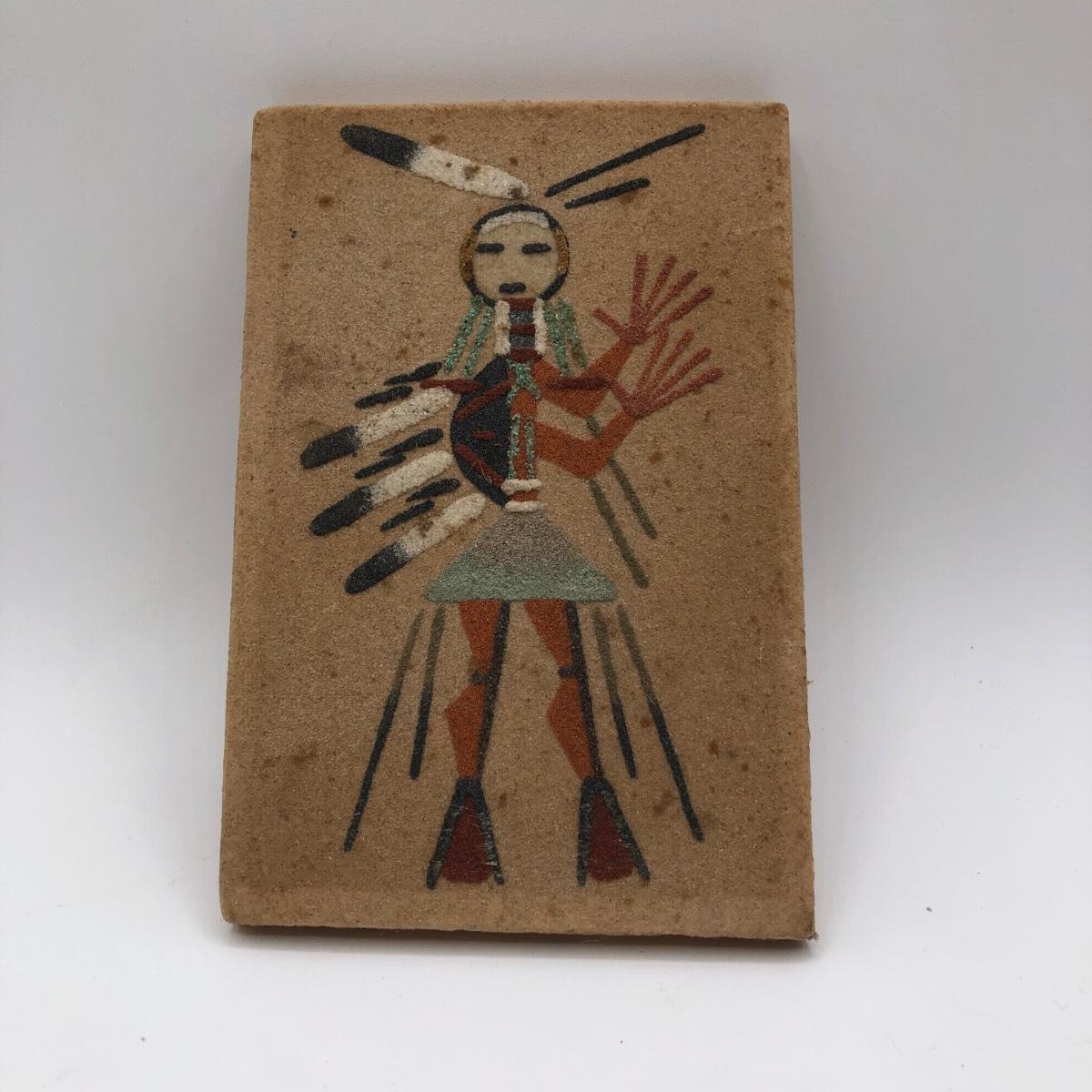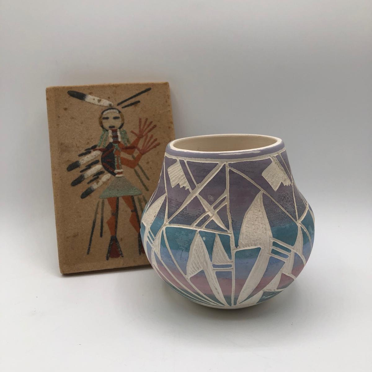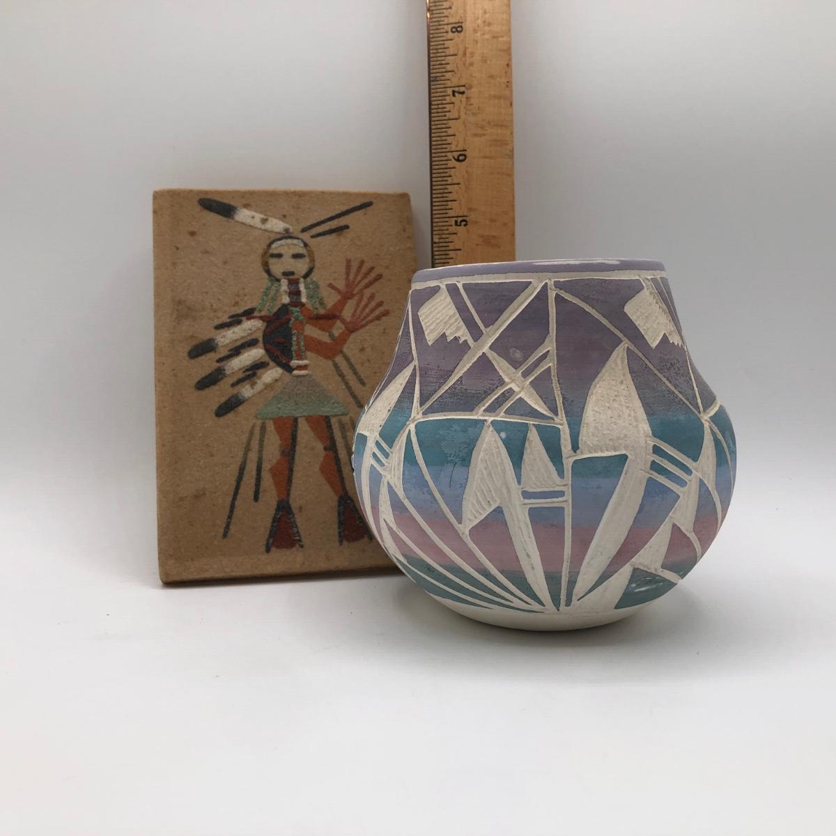 LOT 417K: Native American Style Art - Signed Pastel Vase & Sand Painting