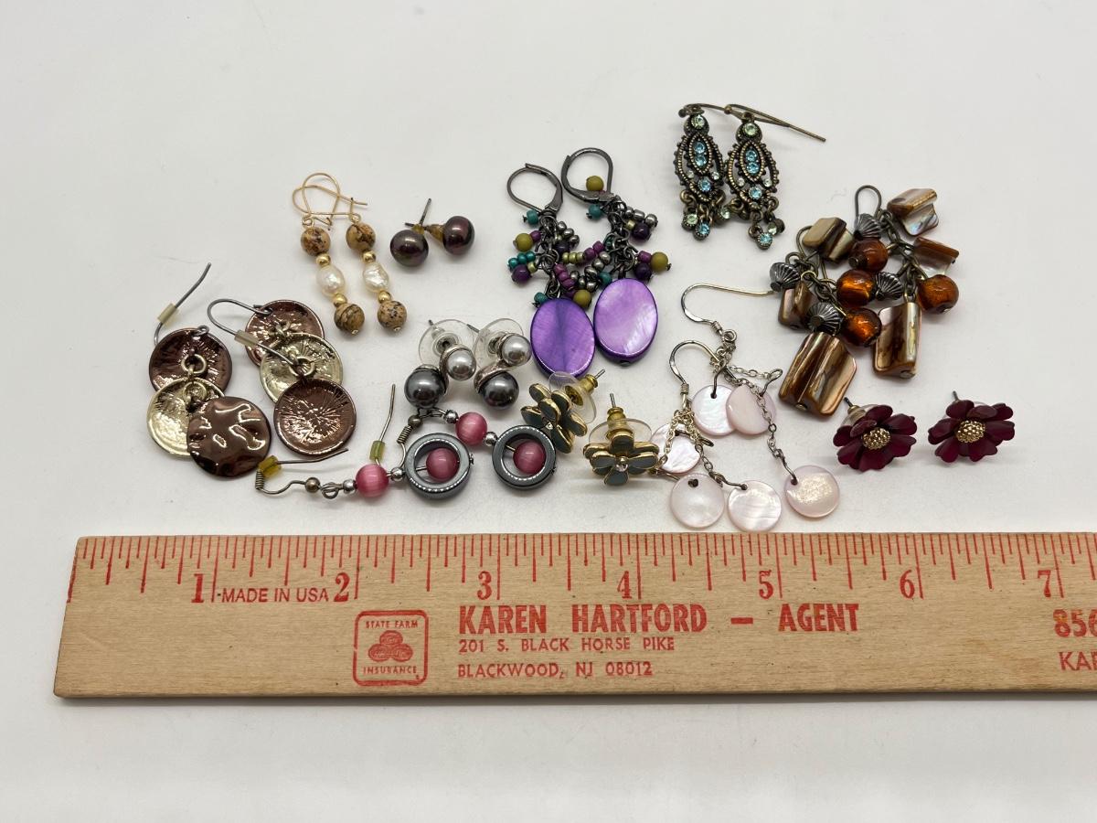 LOT 418J: Assorted Jewel Tone Costume Earrings