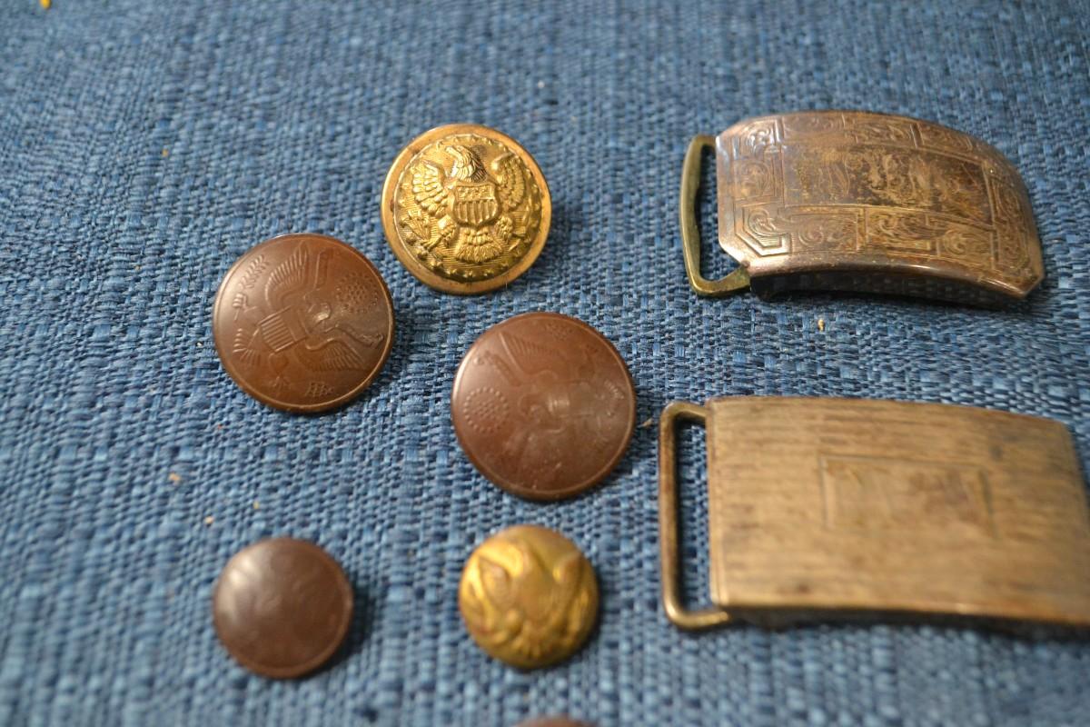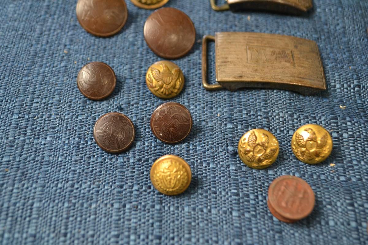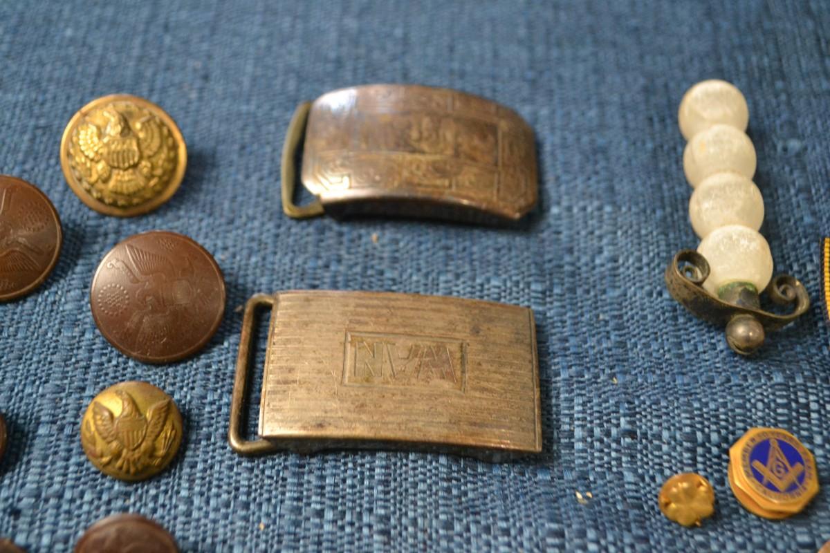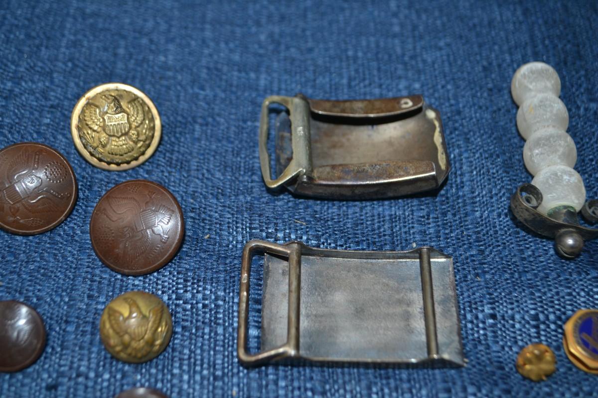 MILITARY ITEMS, BUCKLES, PINS, BUTTONS